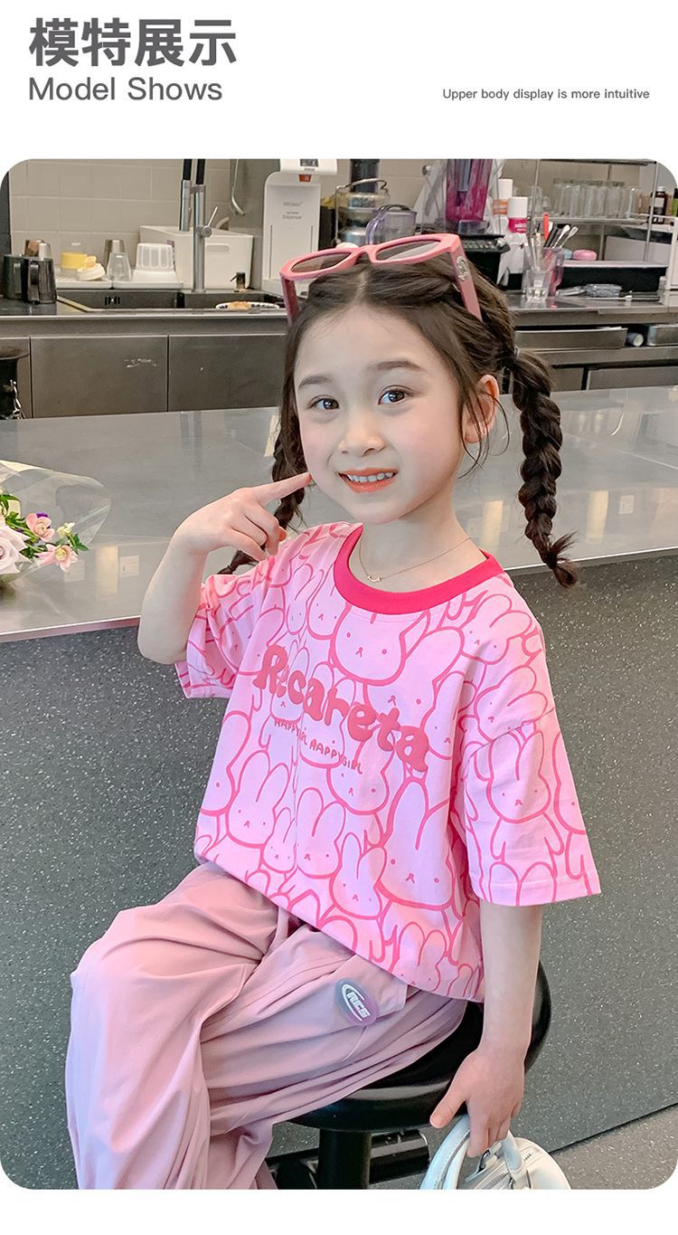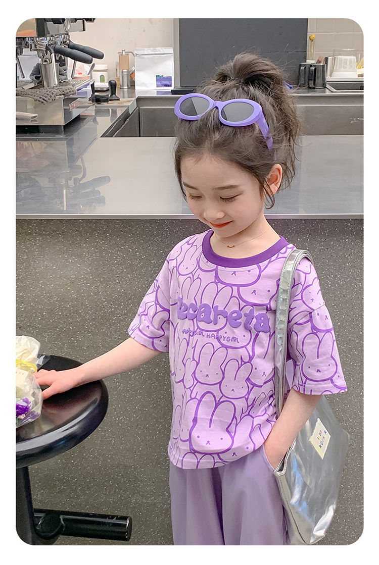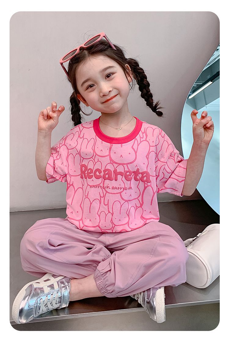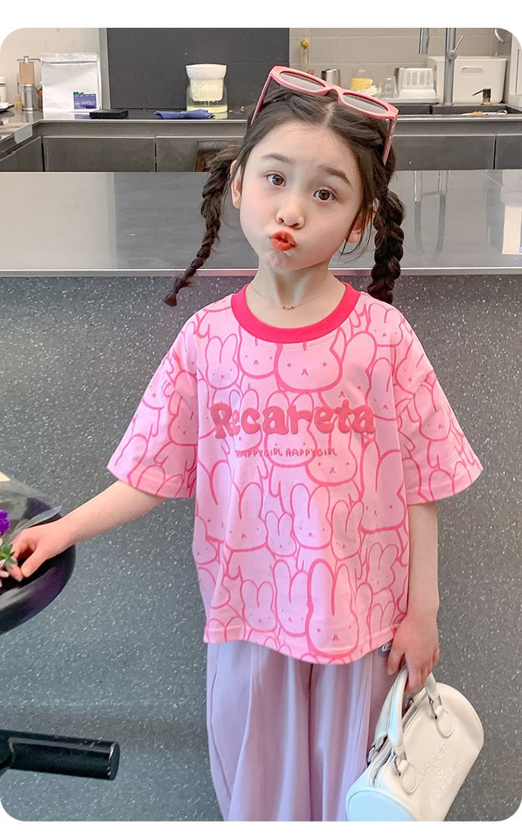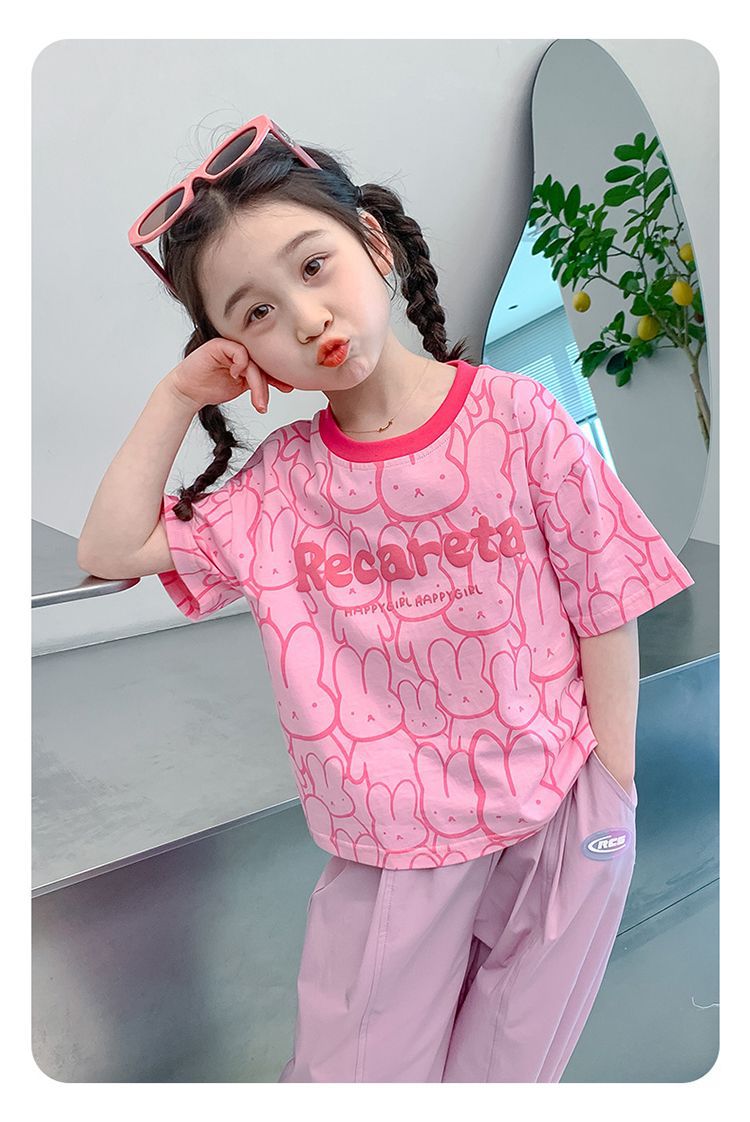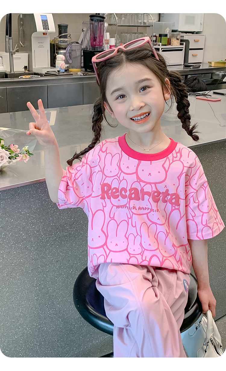 여아 티셔츠 반팔 여름 새 스타일 중대형 아동용 순면 티셔츠 아동용 바닥 셔츠 라운드 넥 디자인 탑 트렌디스토어 가기