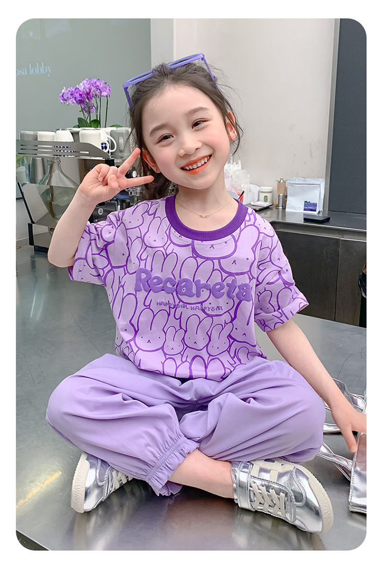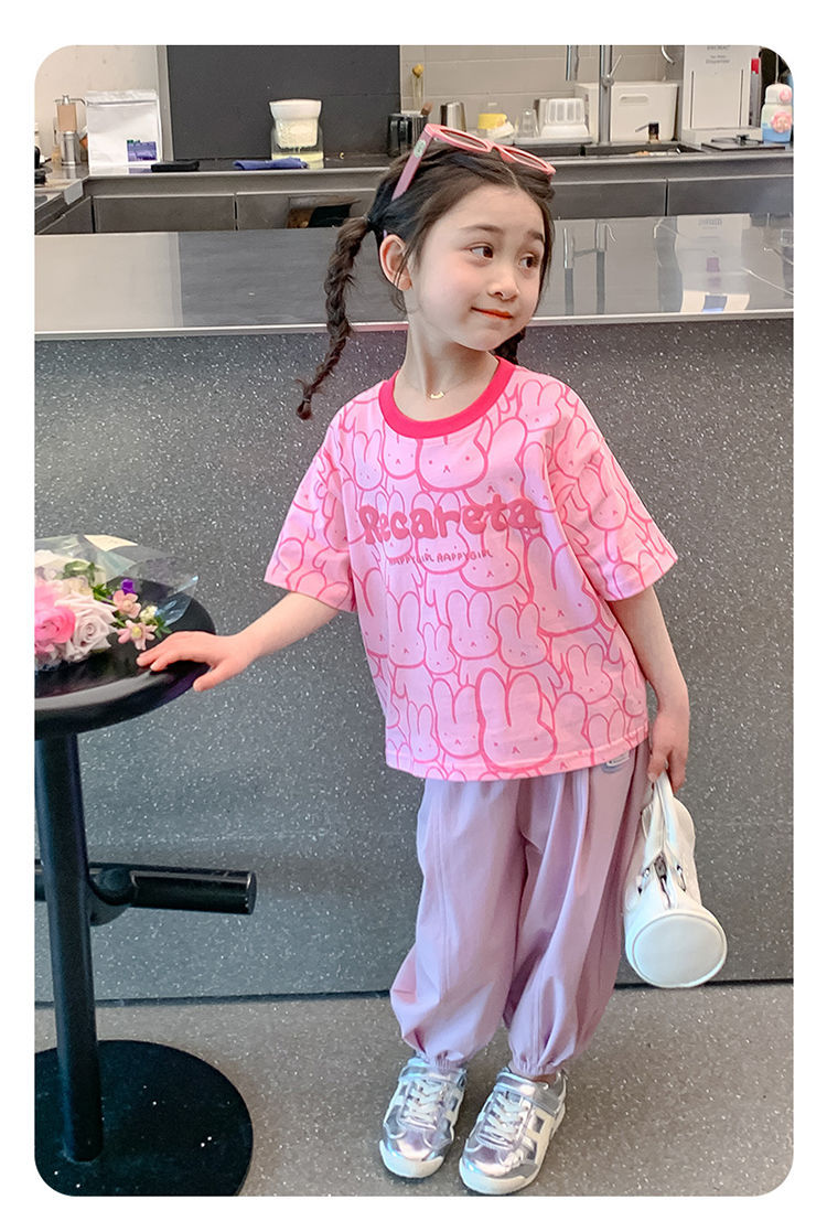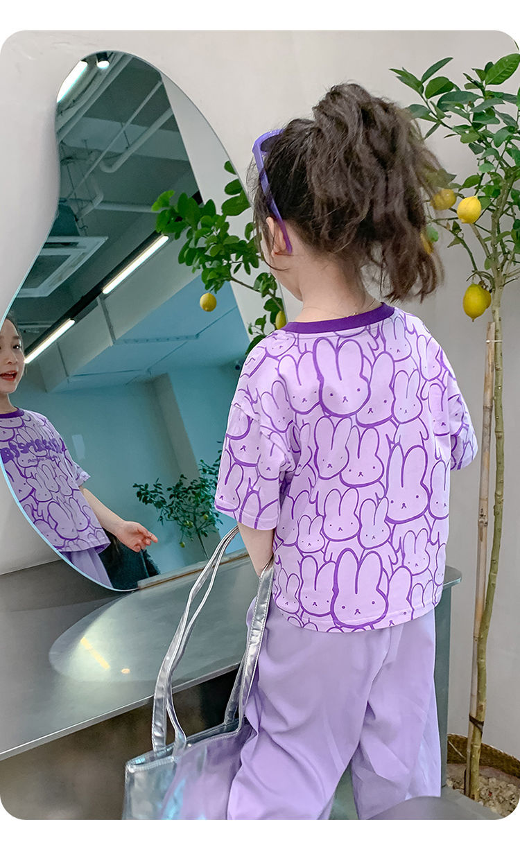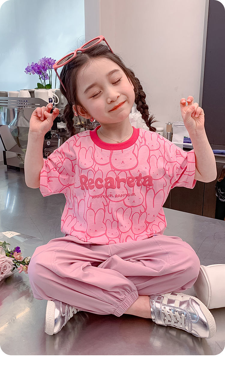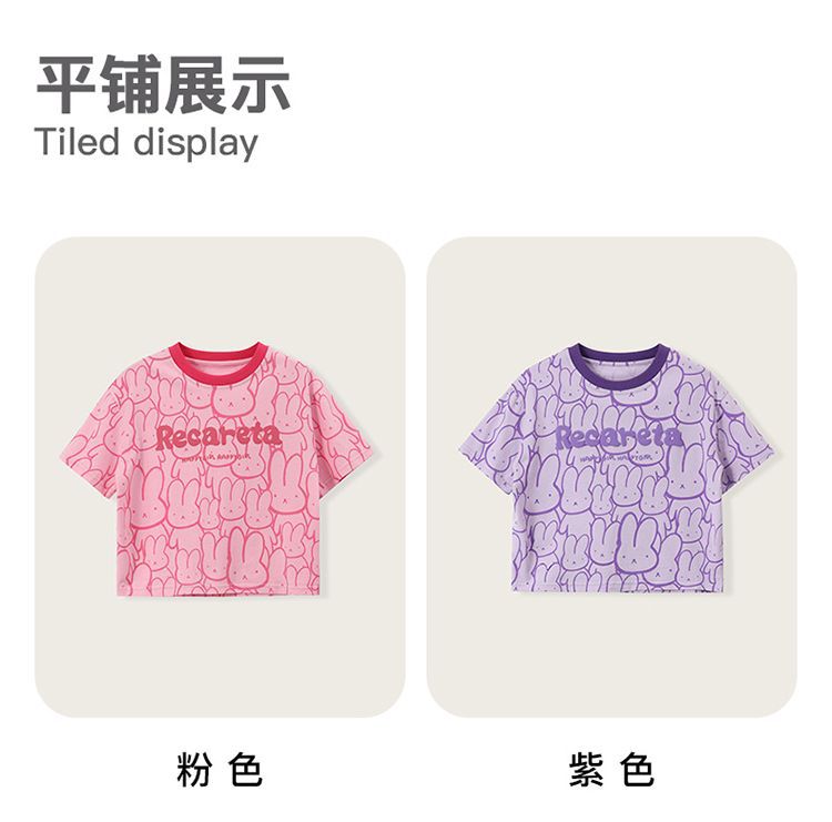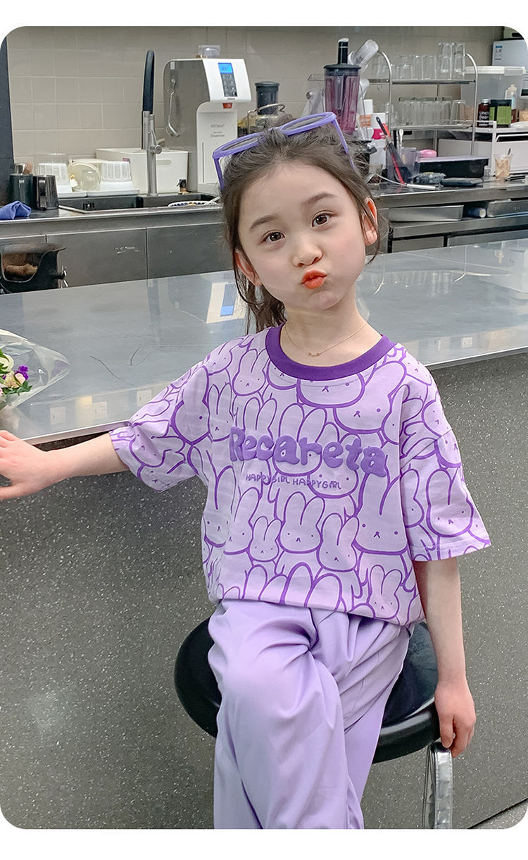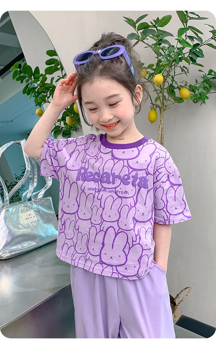 여아 티셔츠 반팔 여름 새 스타일 중대형 아동용 순면 티셔츠 아동용 바닥 셔츠 라운드 넥 디자인 탑 트렌디스토어 가기