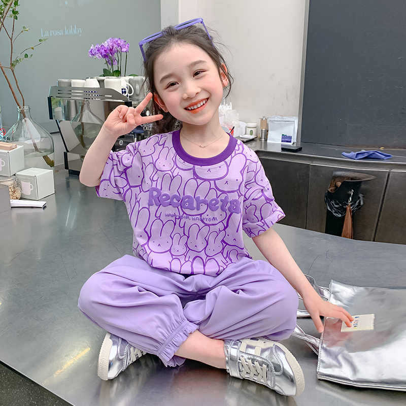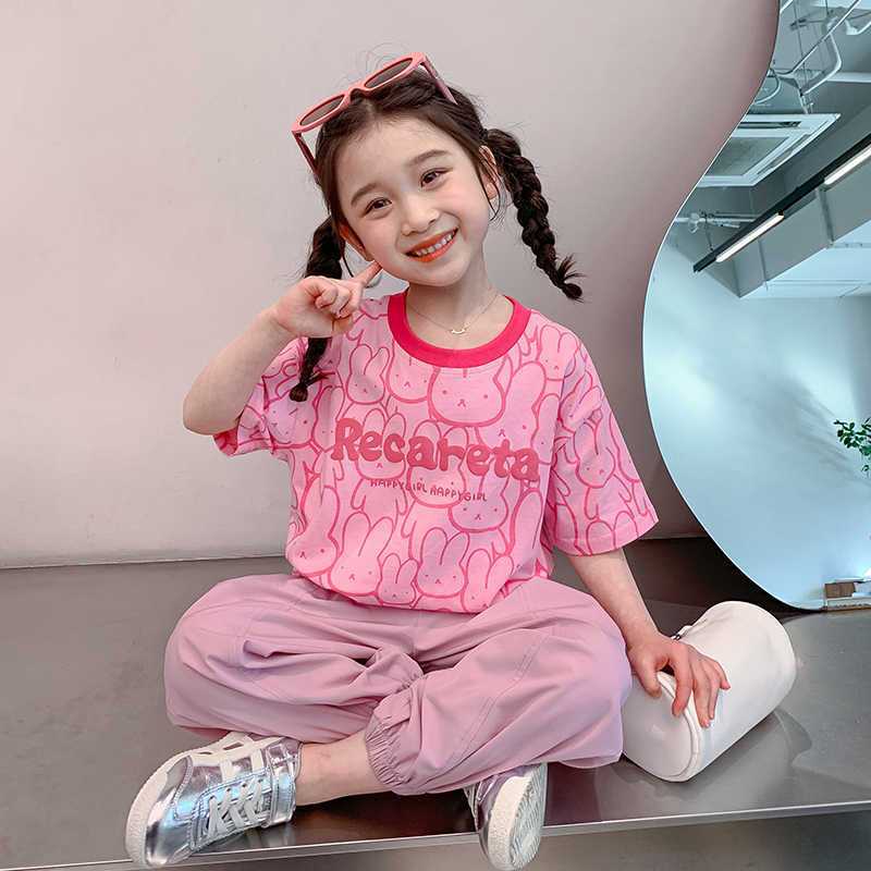 여아 티셔츠 반팔 여름 새 스타일 중대형 아동용 순면 티셔츠 아동용 바닥 셔츠 라운드 넥 디자인 탑 트렌디
