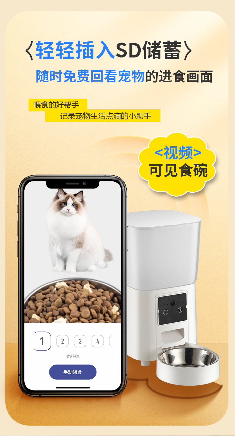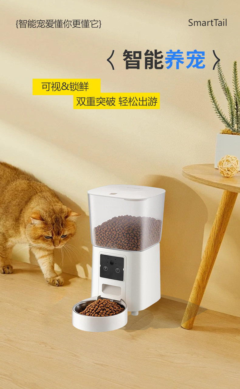 새로운 크로스보더 고양이 자동 급식기, 카메라로 원격 모니터링 가능, 스테인리스 고양이 사료 및 강아지 사료스토어 가기