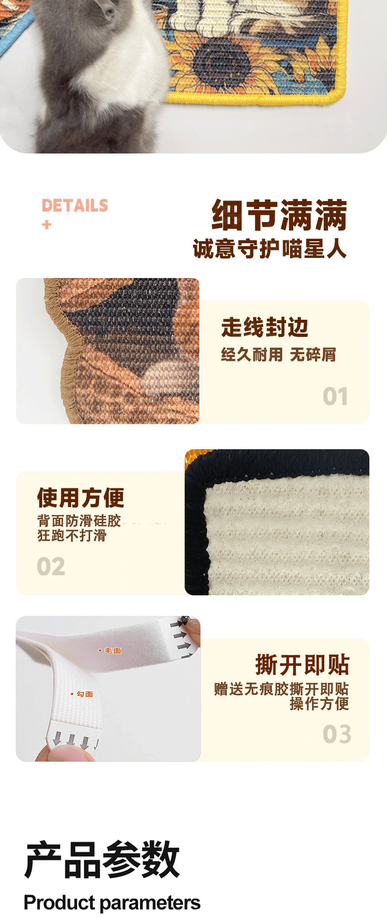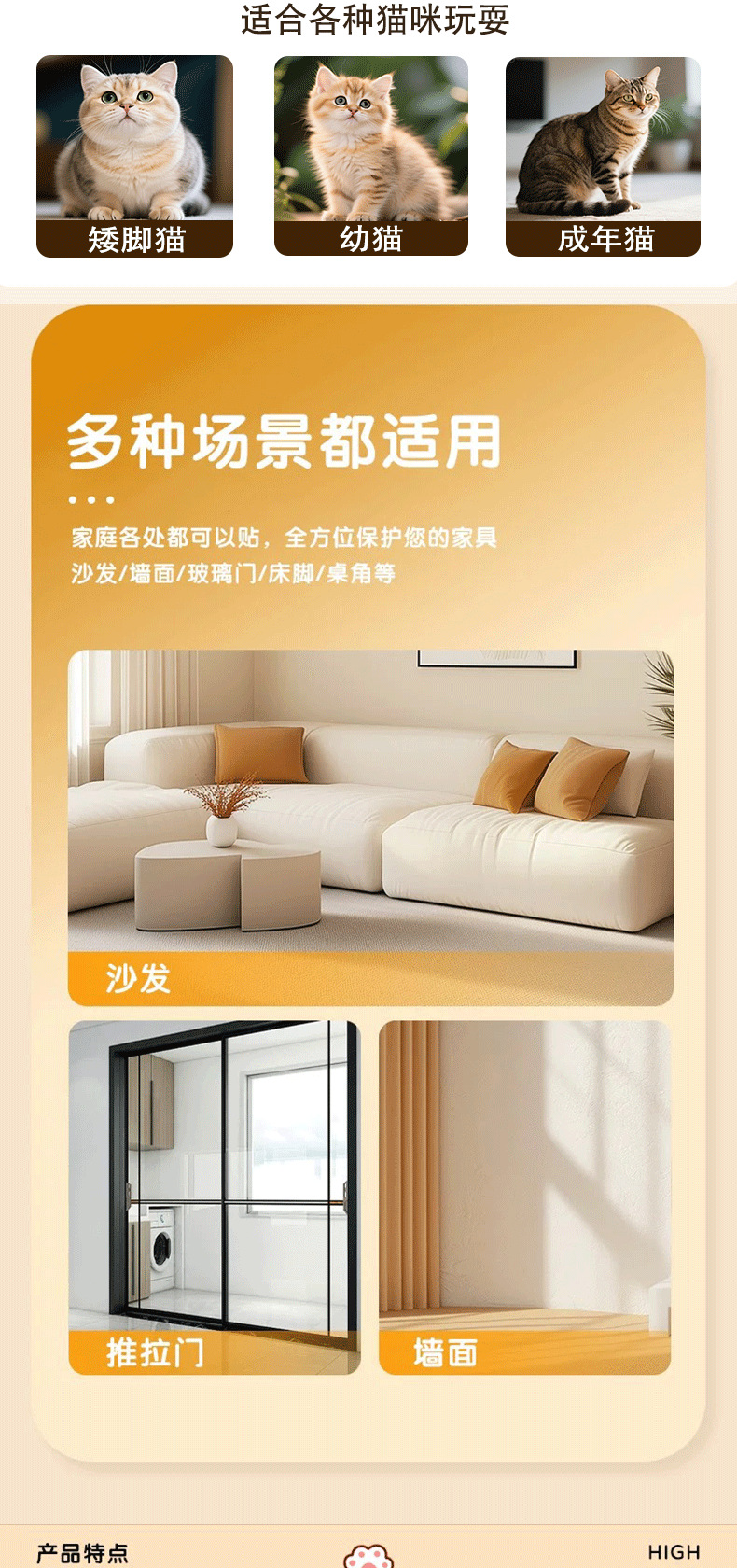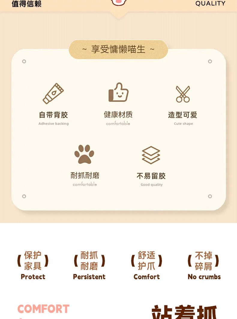 제조업체는 칼라마르타 미끄럼 방지 애완동물 고양이 스크래치 방지 내마모성 흔적 없는 접착식 수직 벽 스티커 소파 보호제를 공급합니다.스토어 가기