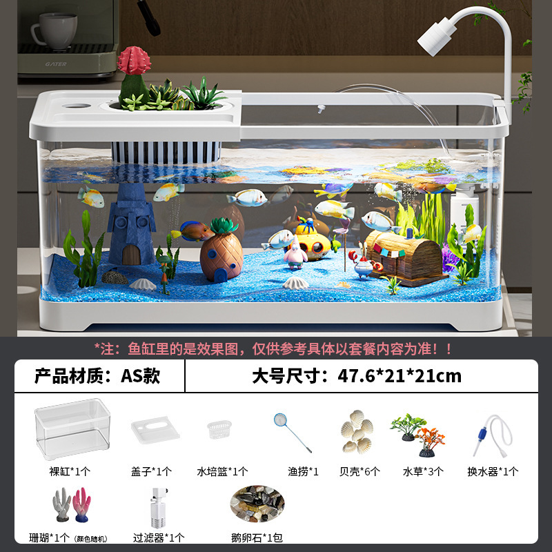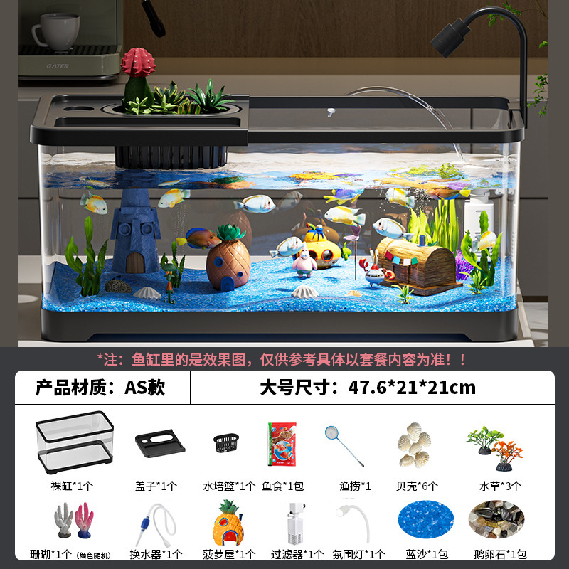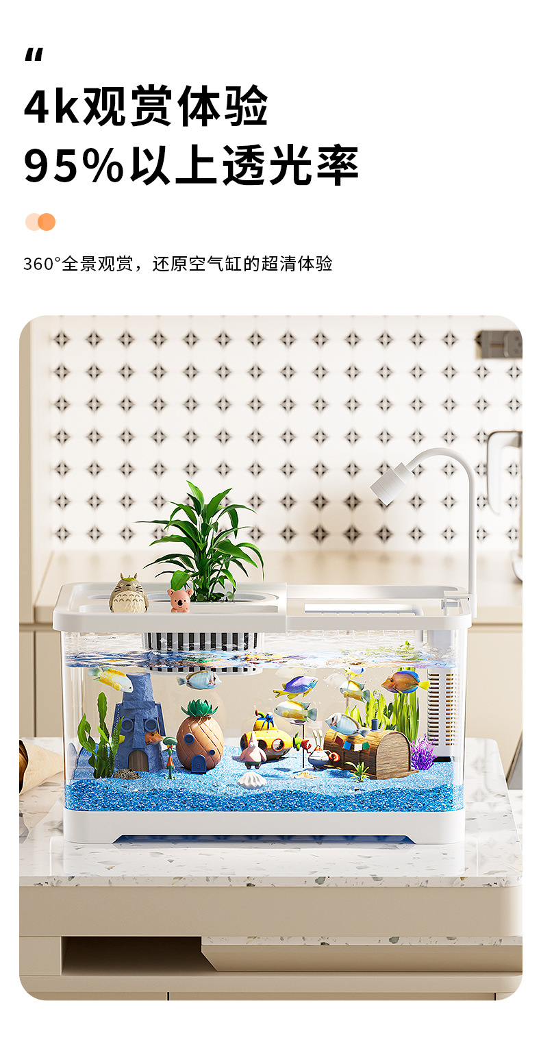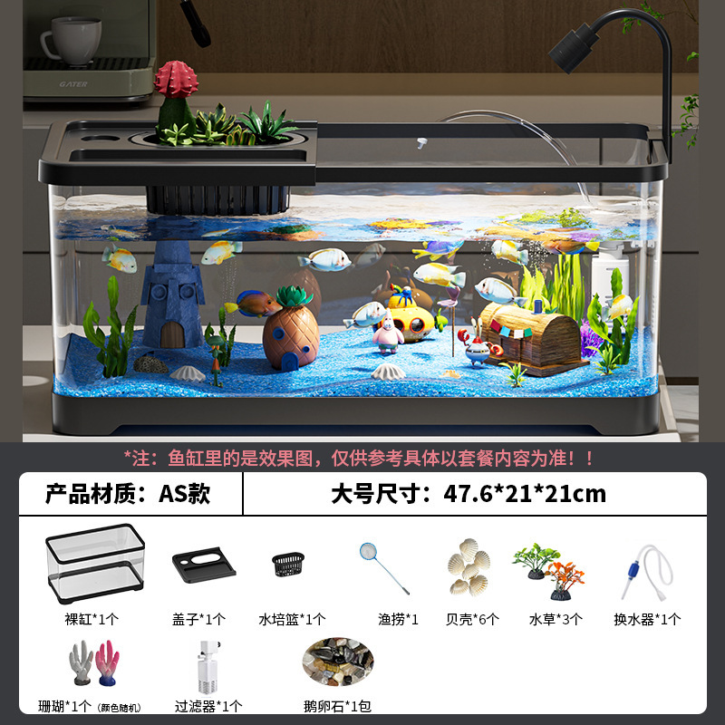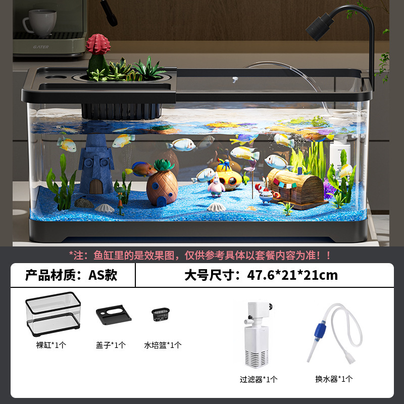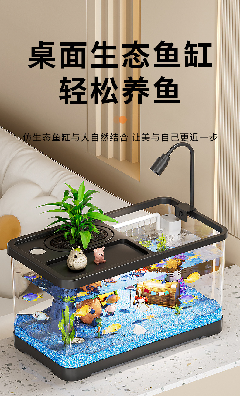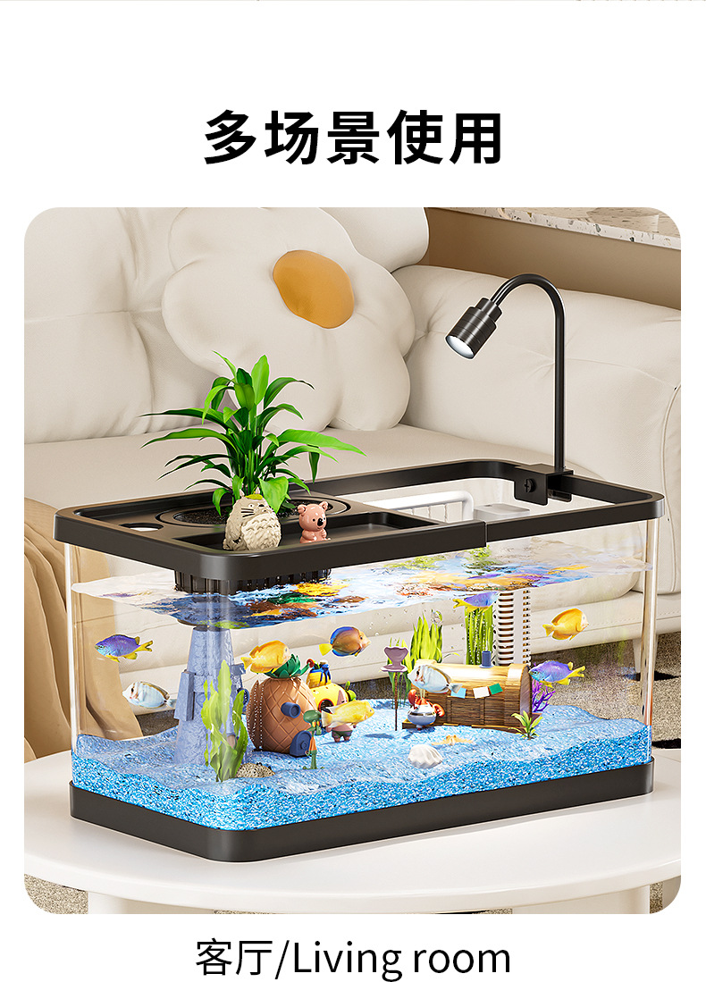 거실 작은 수족관 홈 생태 물고기 탱크 사무실 데스크탑 광장 betta 물고기 탱크 높은 투명도 조경 스트림 탱크