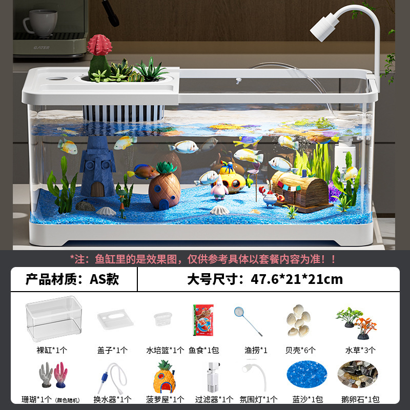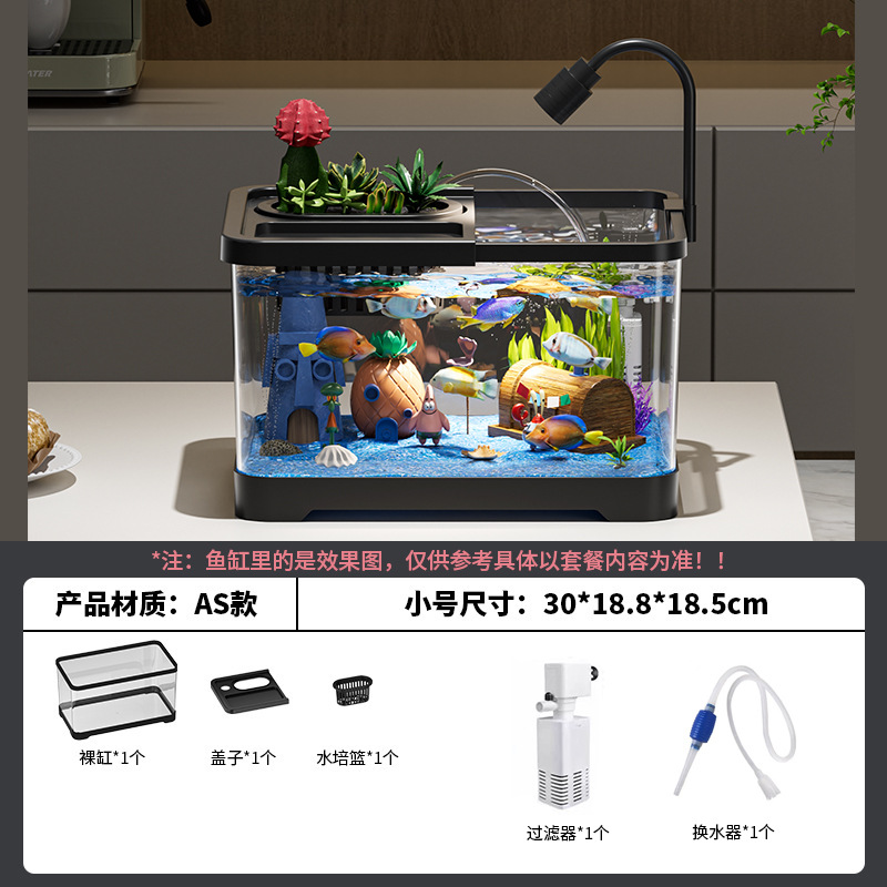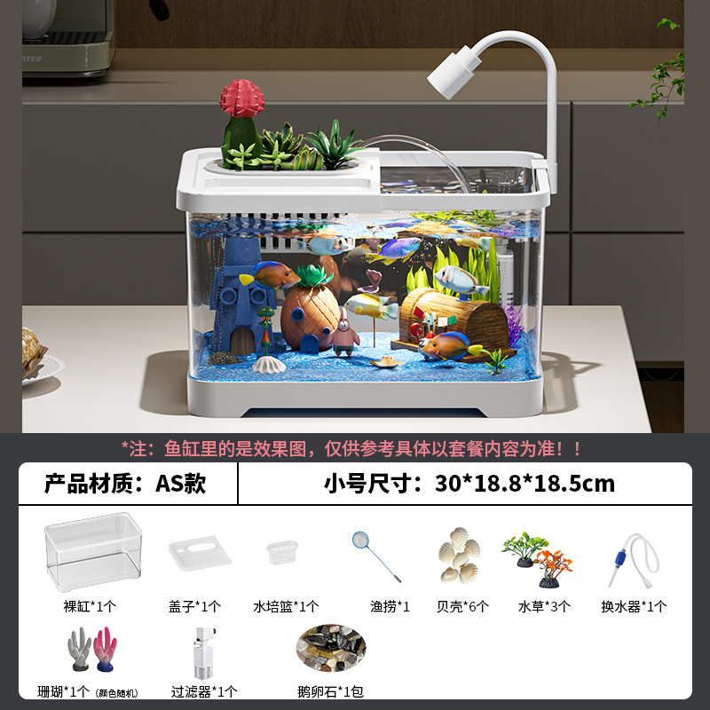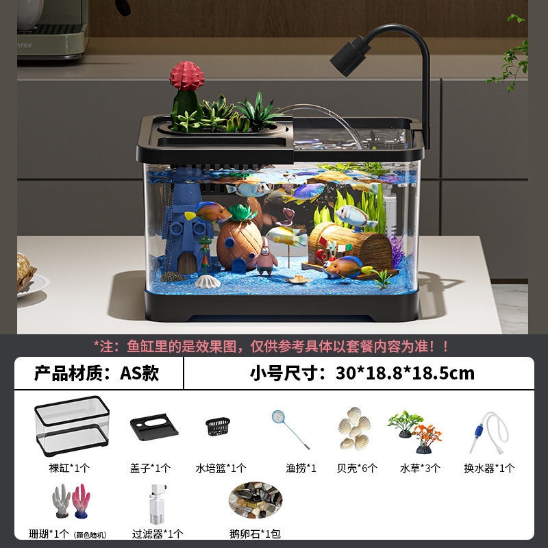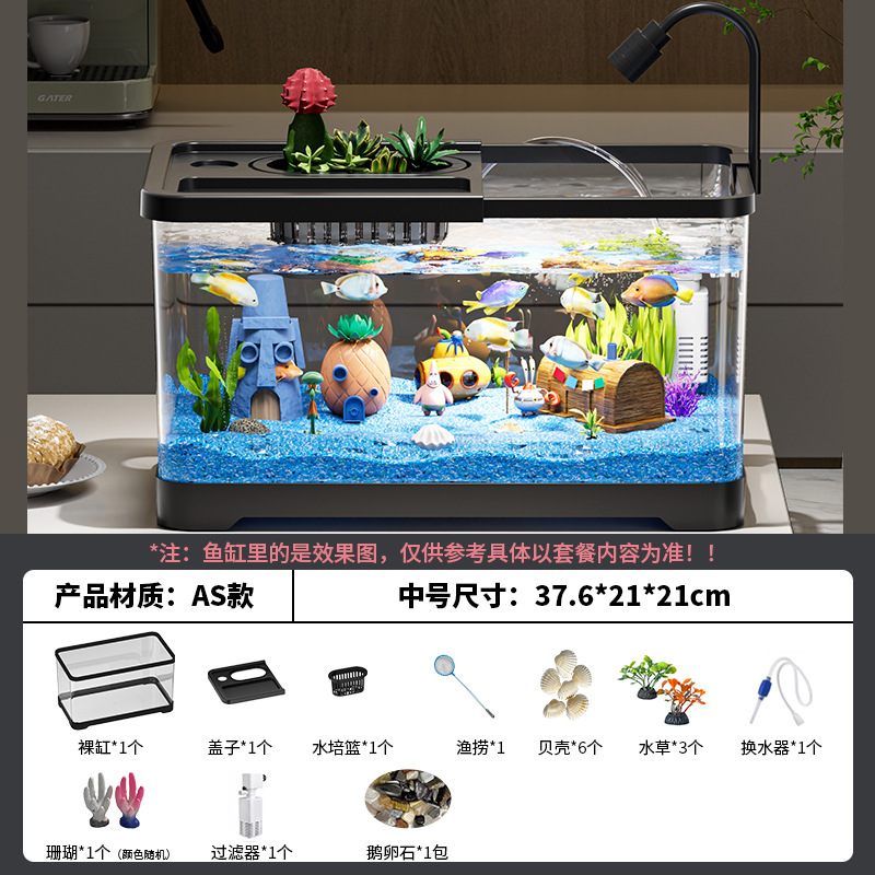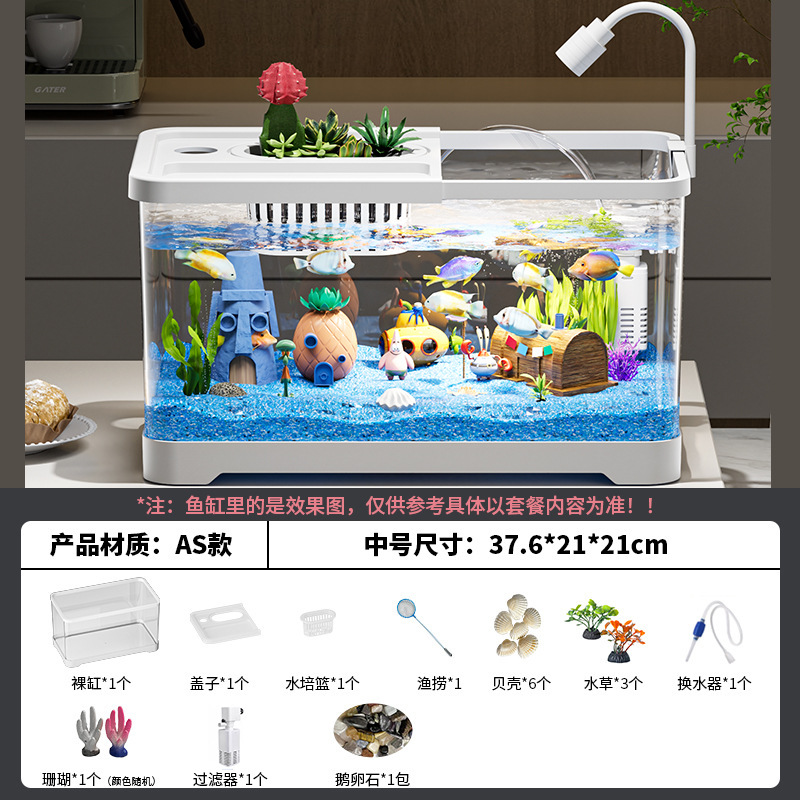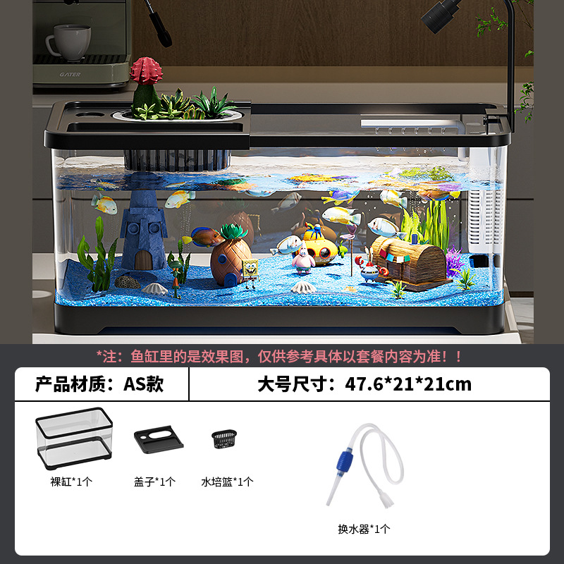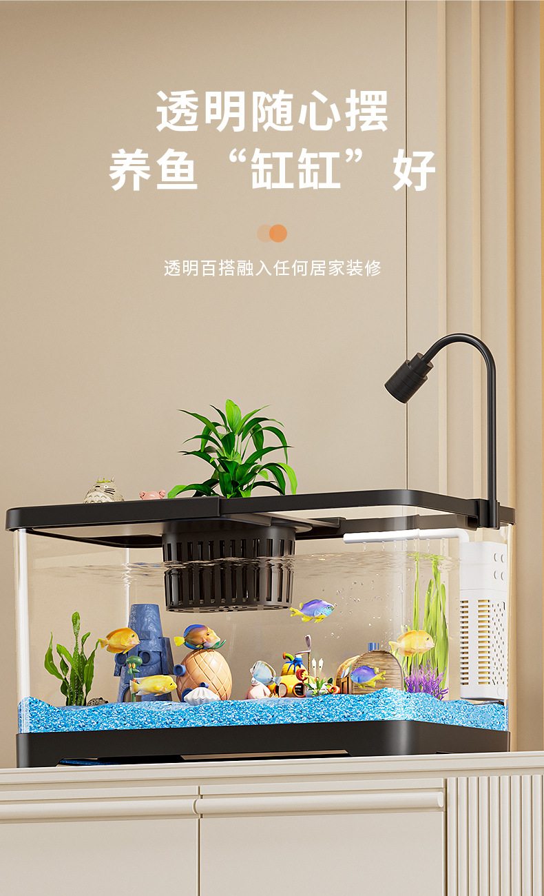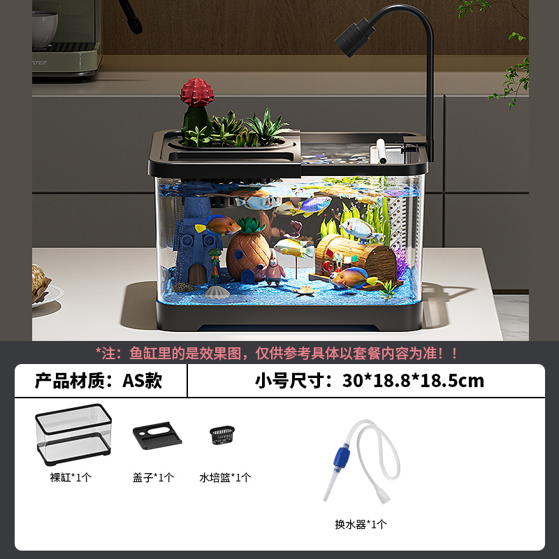거실 작은 수족관 홈 생태 물고기 탱크 사무실 데스크탑 광장 betta 물고기 탱크 높은 투명도 조경 스트림 탱크