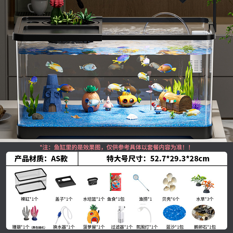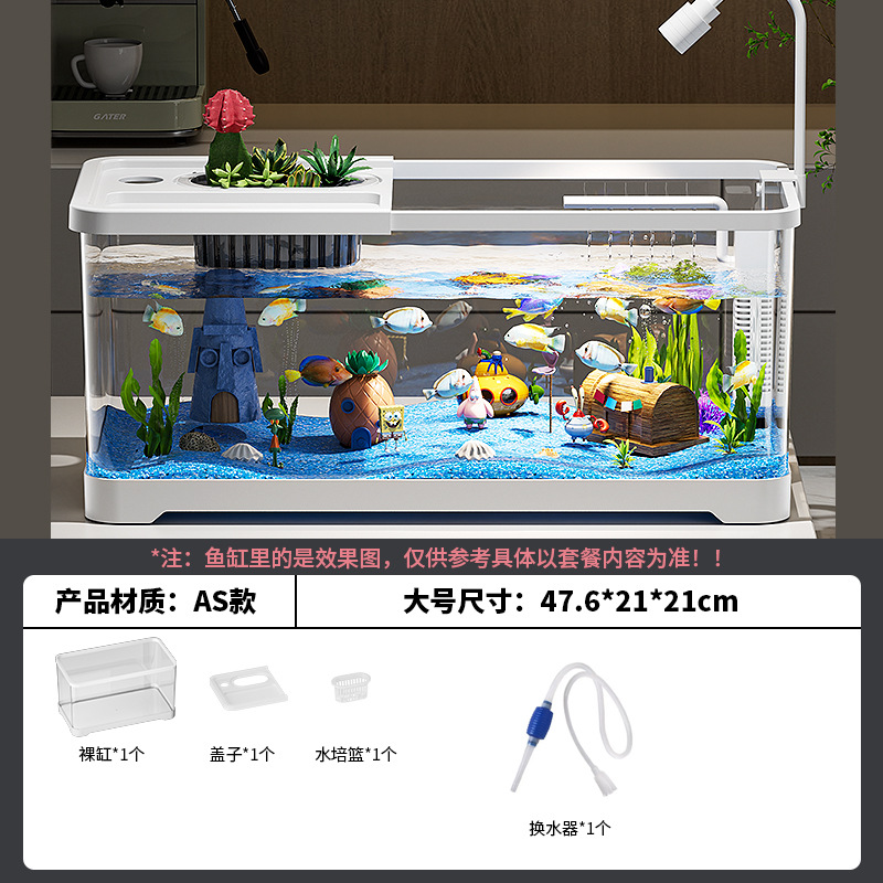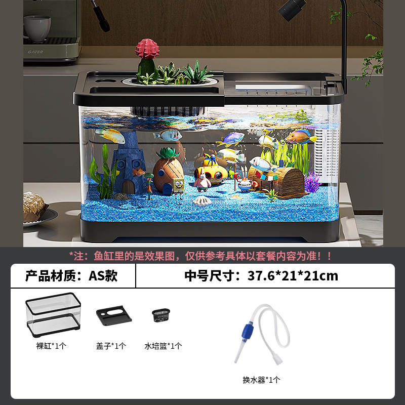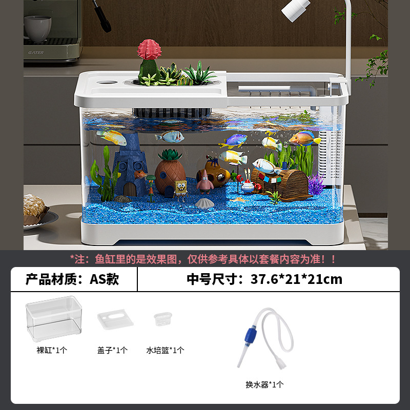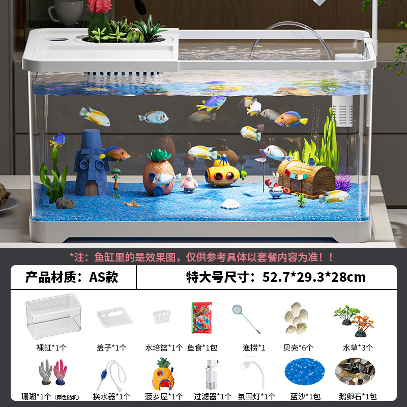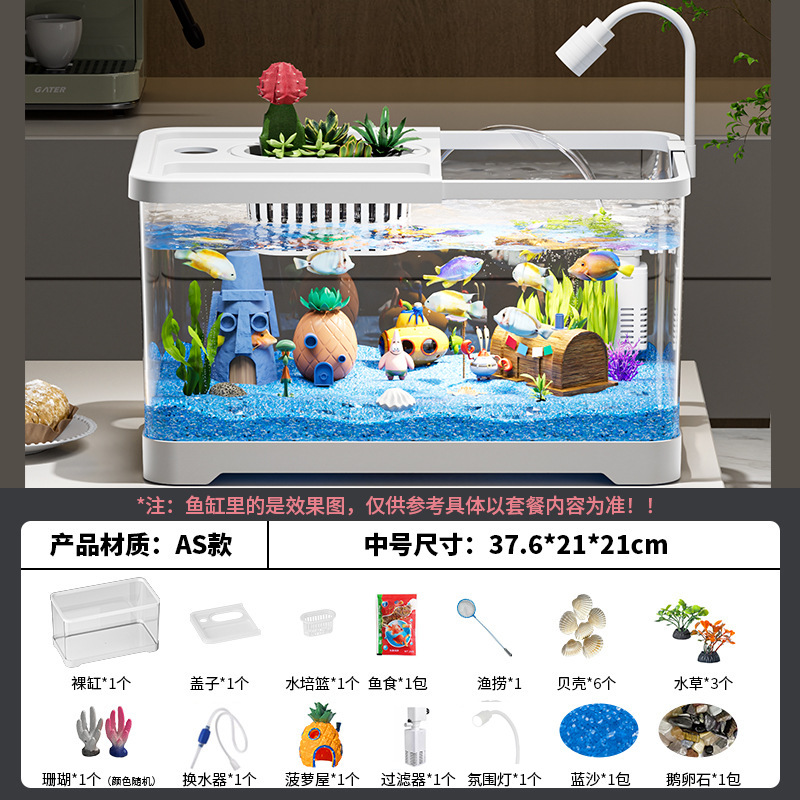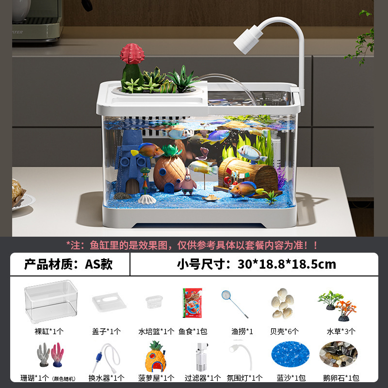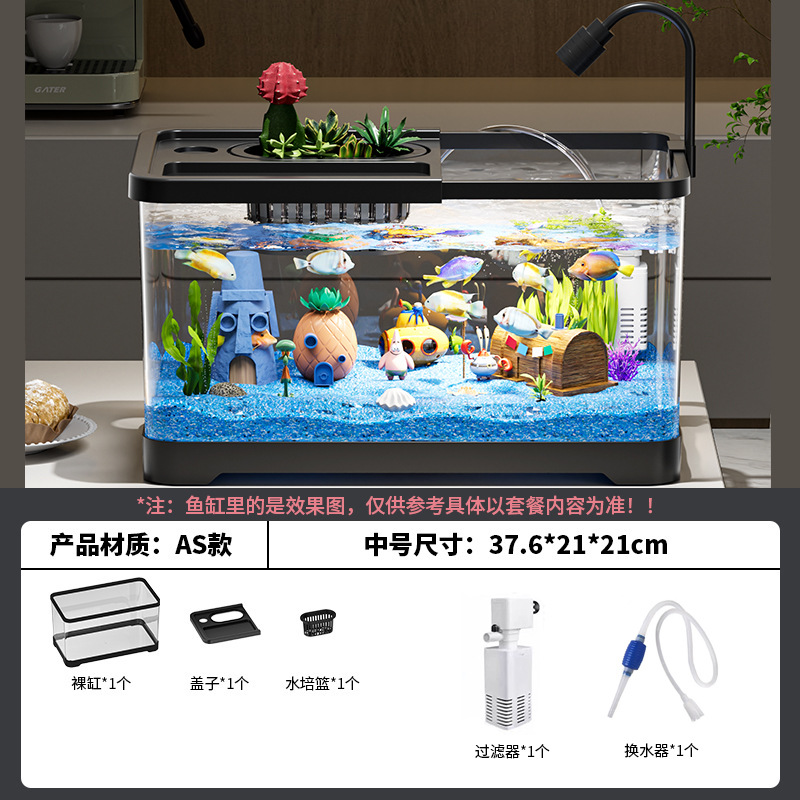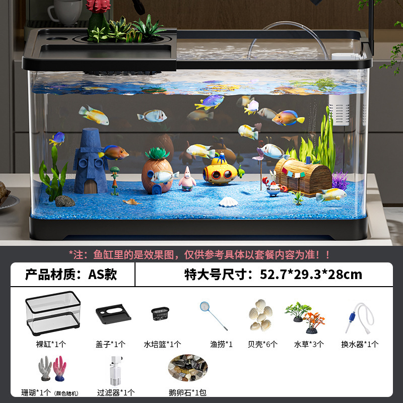 거실 작은 수족관 홈 생태 물고기 탱크 사무실 데스크탑 광장 betta 물고기 탱크 높은 투명도 조경 스트림 탱크