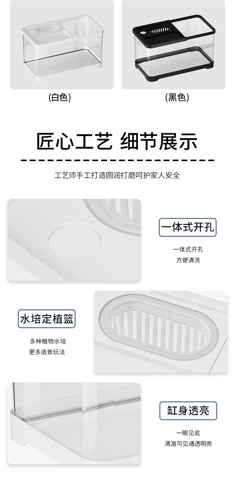 • 뚜껑이 없는 작은 사이즈의 흰색 [투명도가 높은 생태수조, 장기간 사용해도 흐려지지 않음]