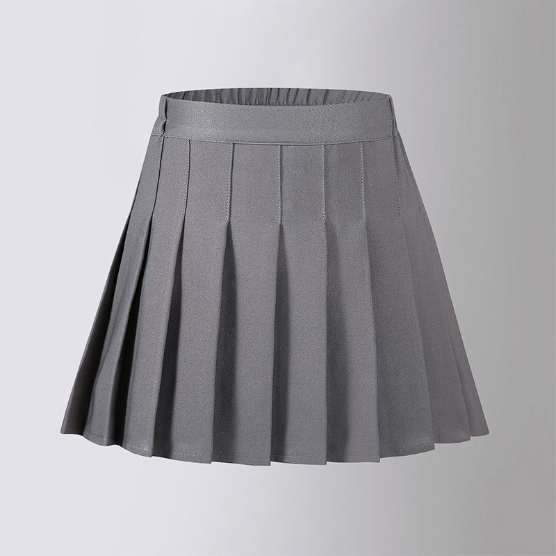 • 노출방지 안감이 있는 그레이 플리츠 스커트