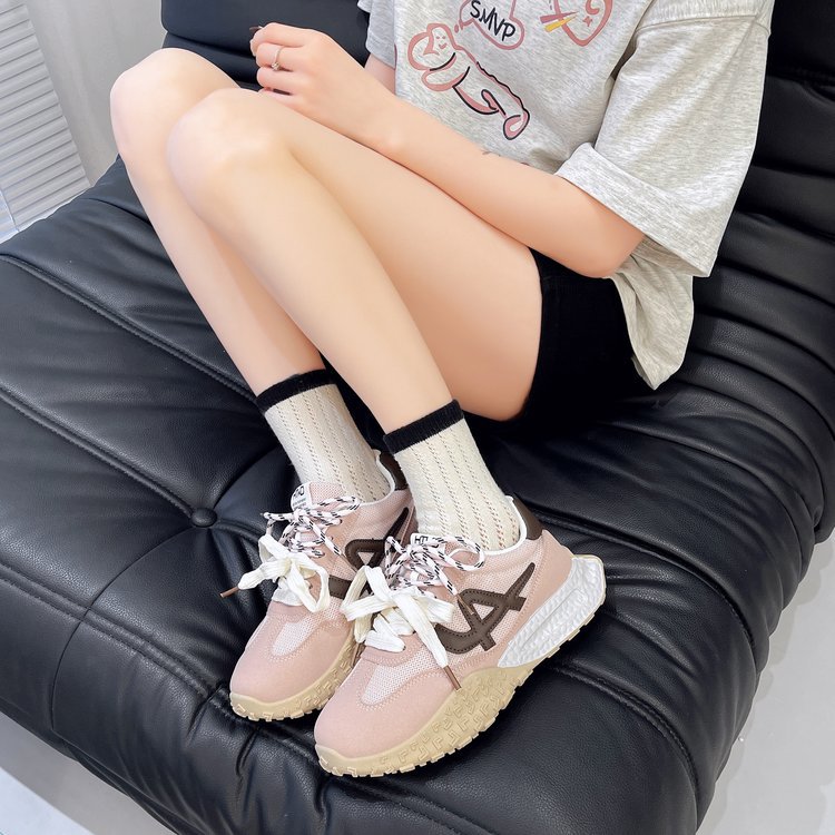 여성을위한 인기있는 덴 트레이닝 두꺼운 밑창 아빠 신발 2025 여름 새로운 다목적 흰색 신발 한국어 메쉬 통기성 스포츠 신발