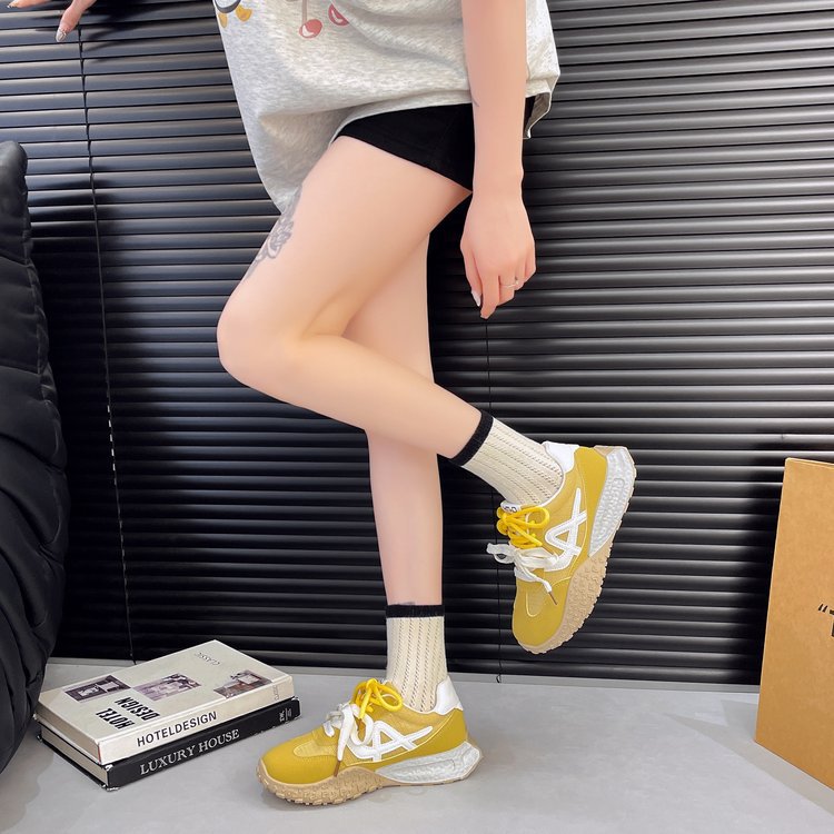 여성을위한 인기있는 덴 트레이닝 두꺼운 밑창 아빠 신발 2025 여름 새로운 다목적 흰색 신발 한국어 메쉬 통기성 스포츠 신발스토어 가기