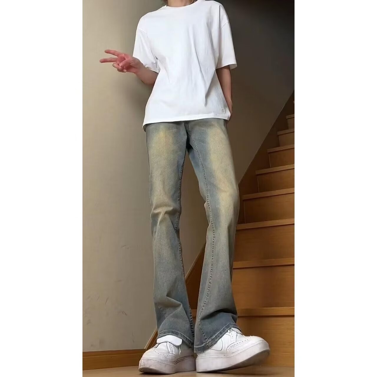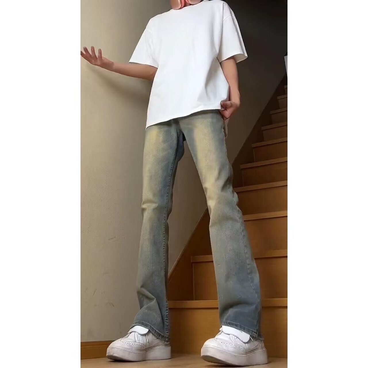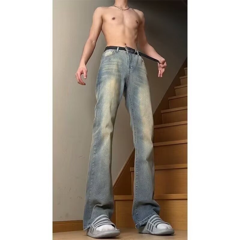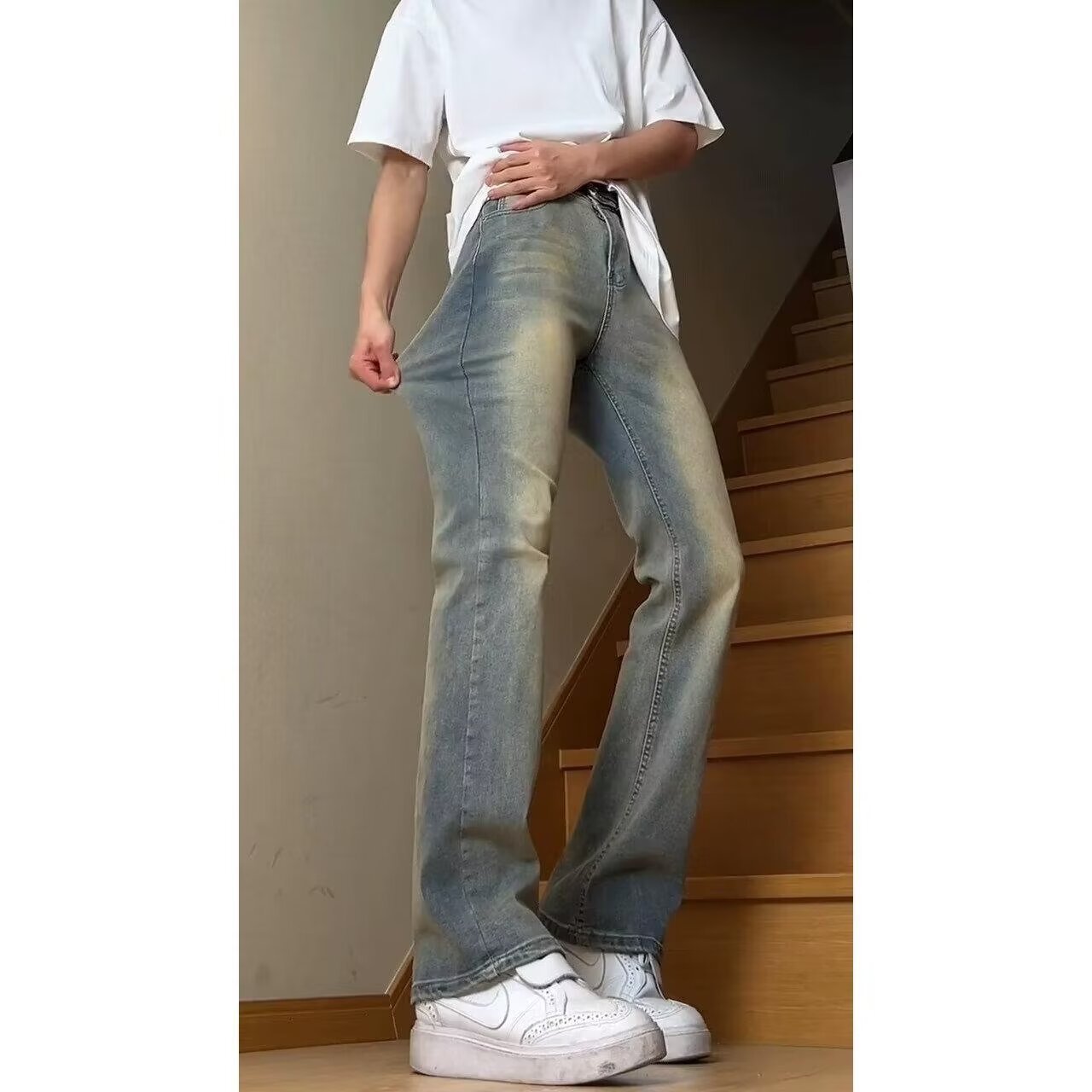 가을 남성용 아메리칸 스트리트 워싱 디스트레스드 부츠컷 청바지 유럽과 미국의 하이 스트리트 바이브 스타일 롱 팬츠스토어 가기