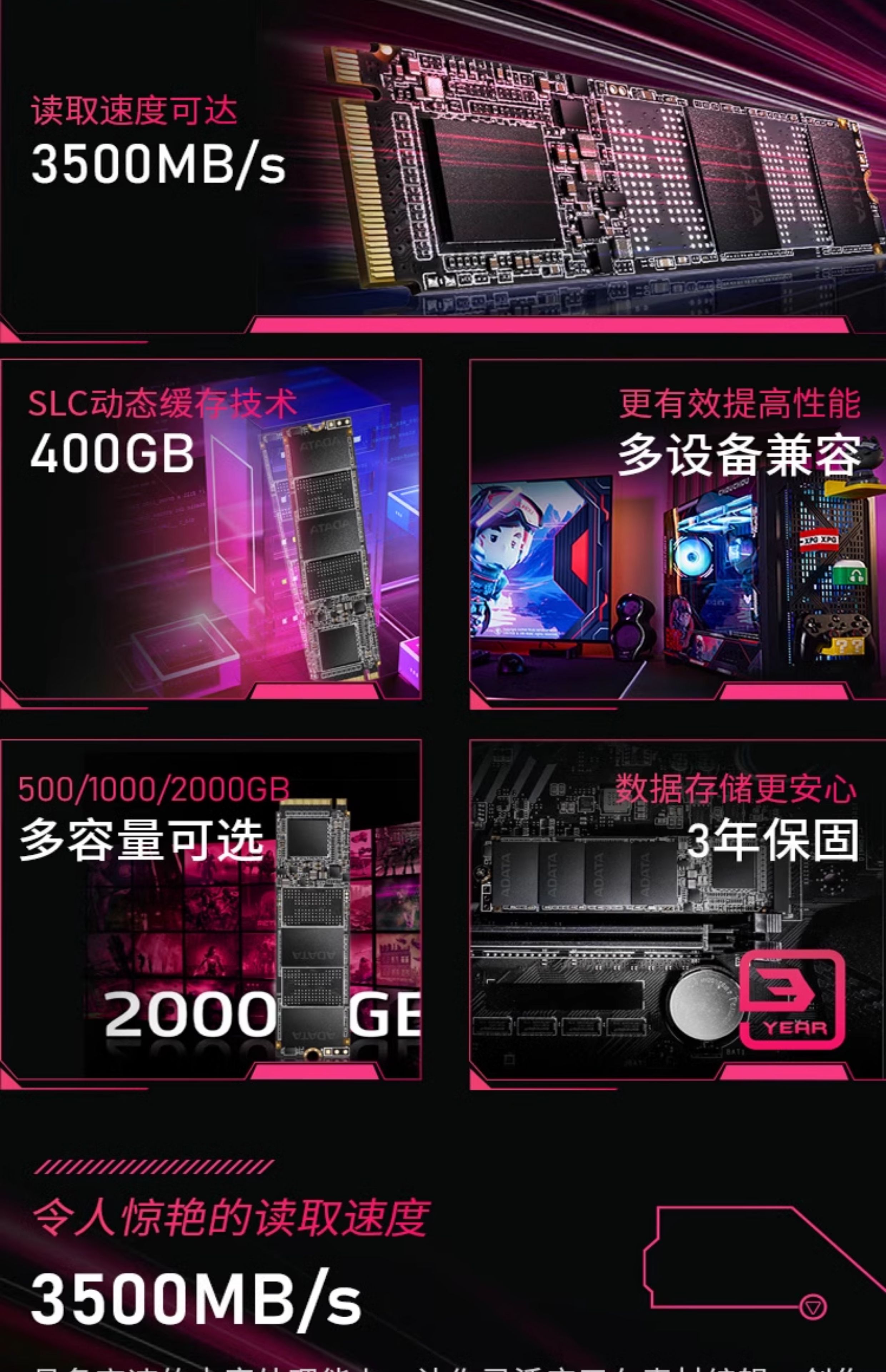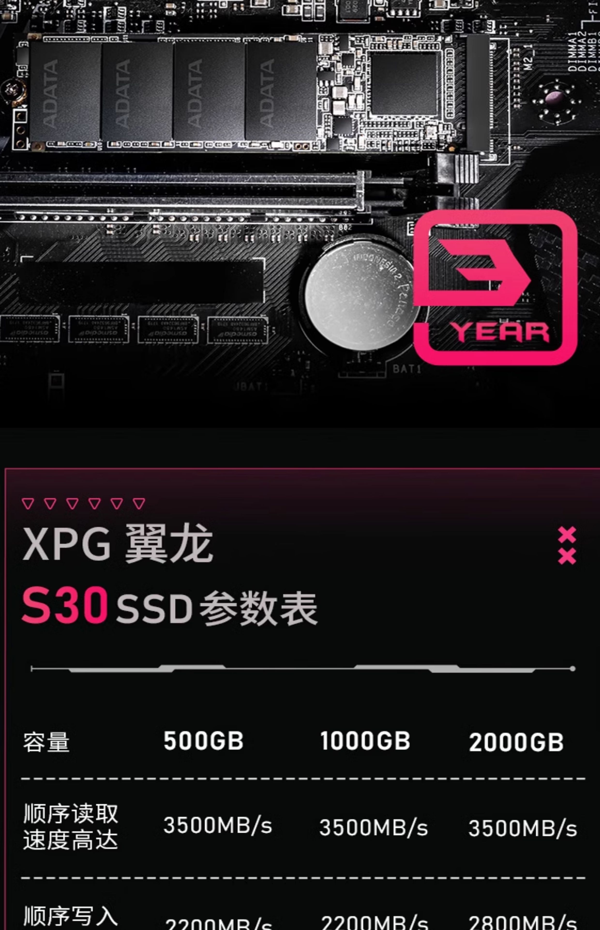 ADATA Pterosaur S30 500G/1TB 솔리드 스테이트 드라이브 M.2 NVME PCIe4.0 데스크탑 컴퓨터에 적합스토어 가기