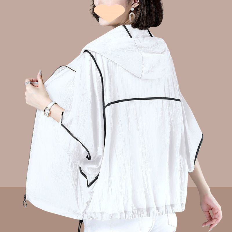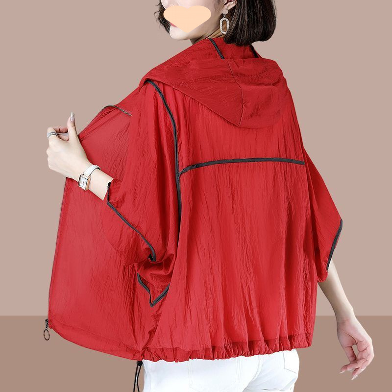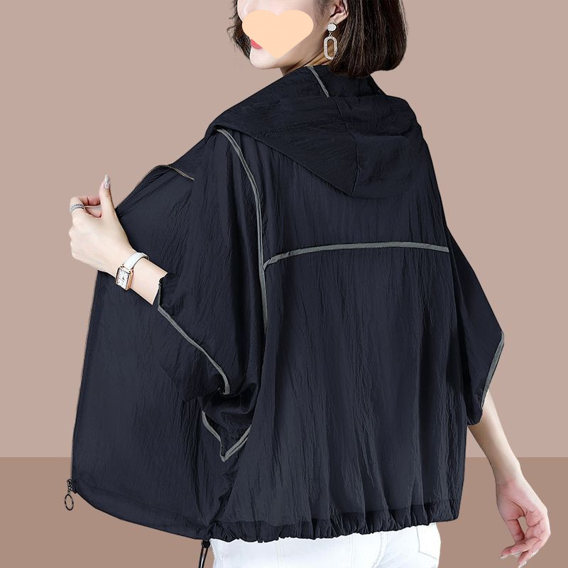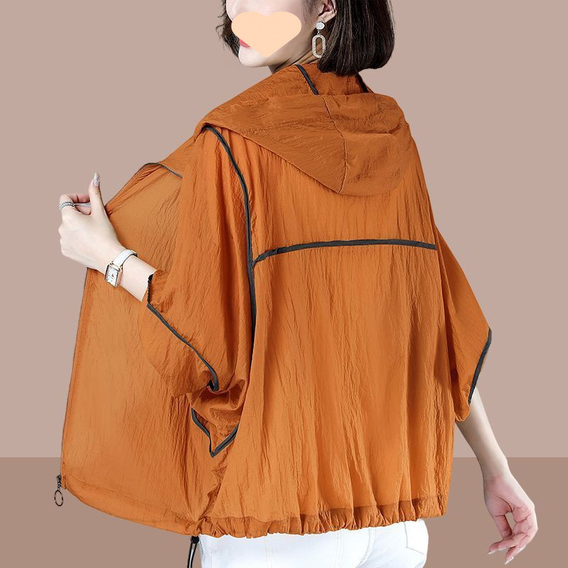 여성을위한 여름 얇은 후드 태양 보호 의류 2025 새로운 스타일은 느슨한 긴팔 통기성 대형 탑 태양 보호 의류 외부에 착용 가능
