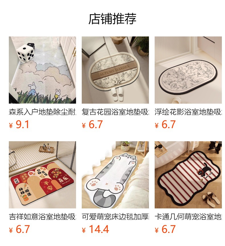 새로운 중국 스타일의 욕실 바닥 매트, 흡수성, 속건성 규조토 진흙 바닥 매트, 내마모성 및 관리가 쉬운 욕실 미끄럼 방지 발 매트스토어 가기