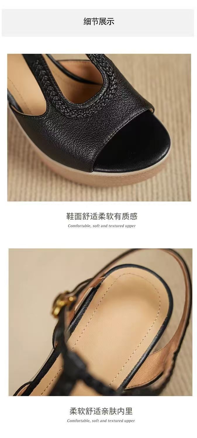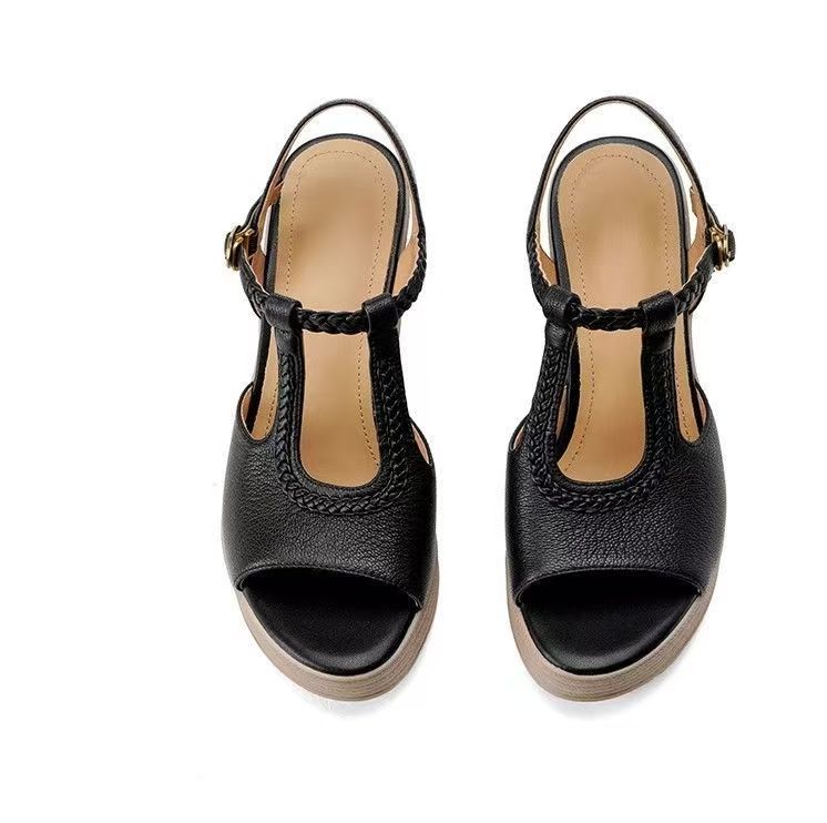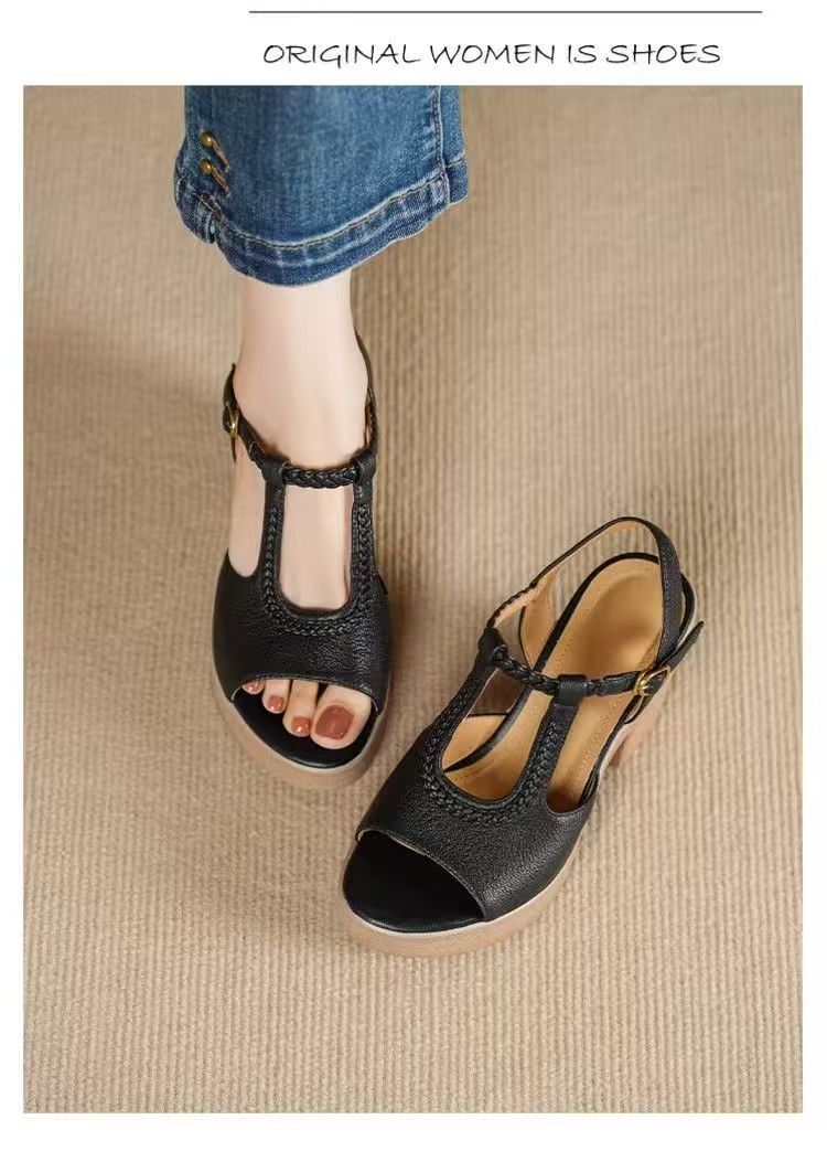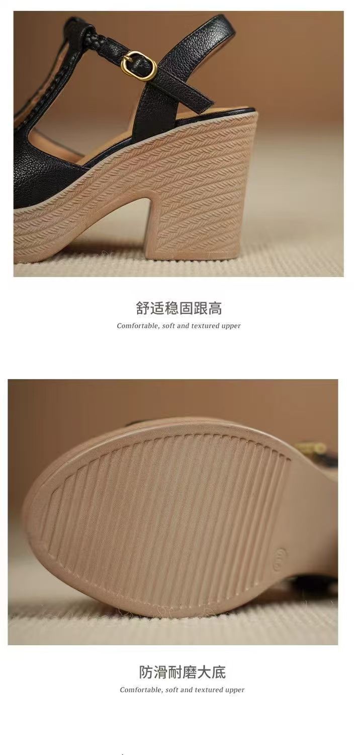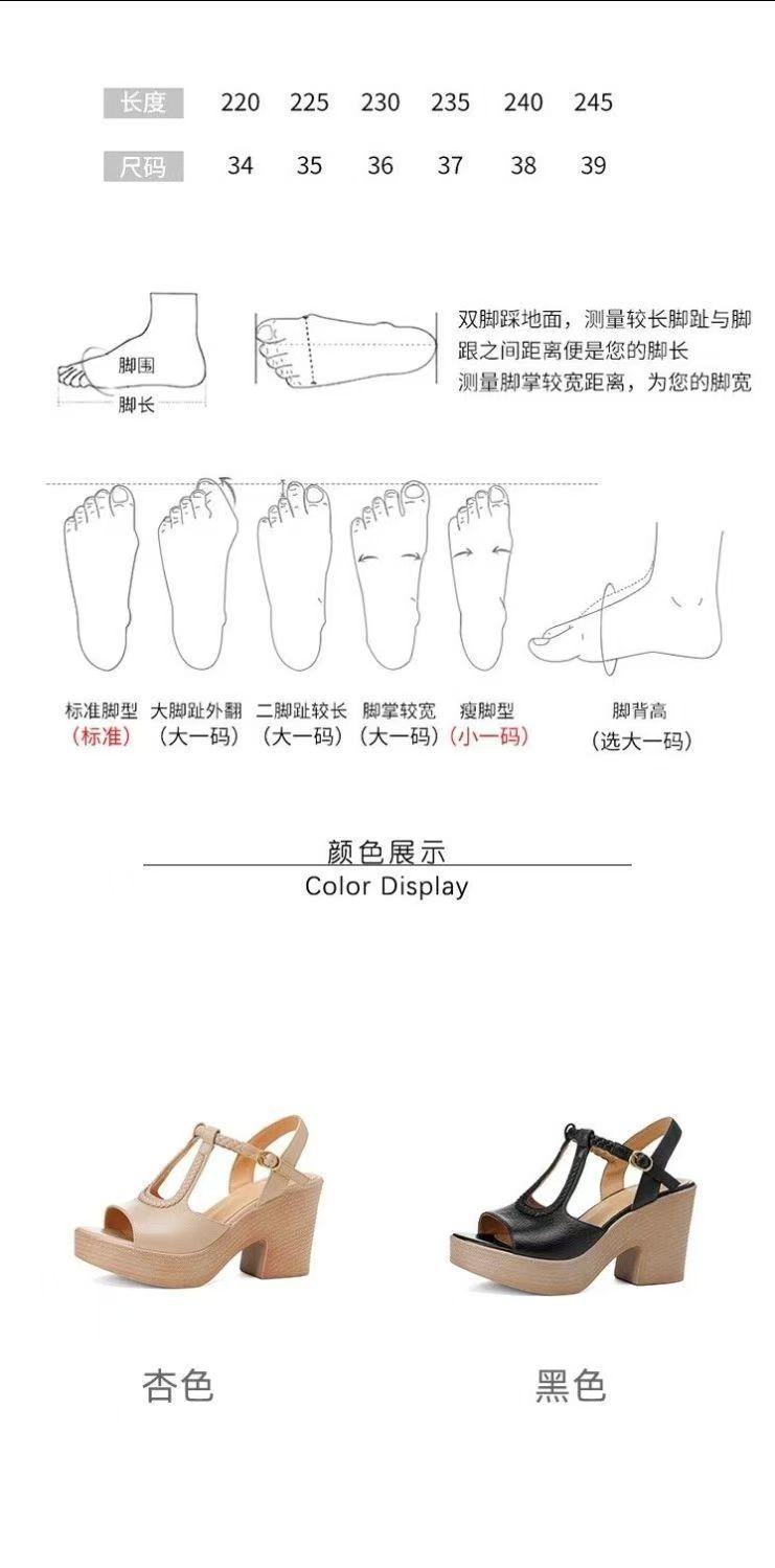 여성을위한 새로운 스타일의 작은 두꺼운 하이힐 샌들 2025 여름 두꺼운 밑창 양피 물고기 입 로마 샌들 여성을위한 여름 스커트스토어 가기