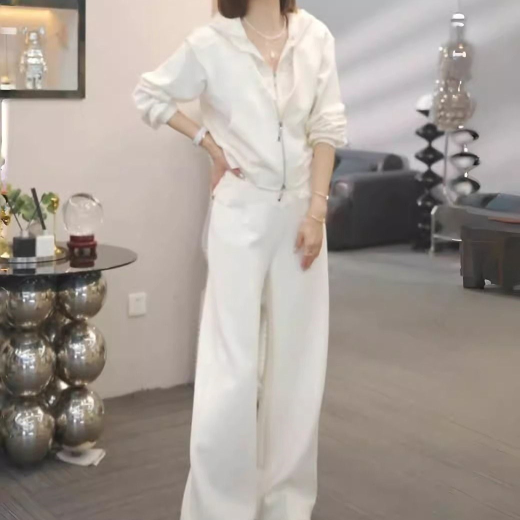 올해 인기 여성복 2025 한국판 고급 스플리싱 레이스 후드 스웨트셔츠 + 캐주얼 팬츠 투피스 세트스토어 가기