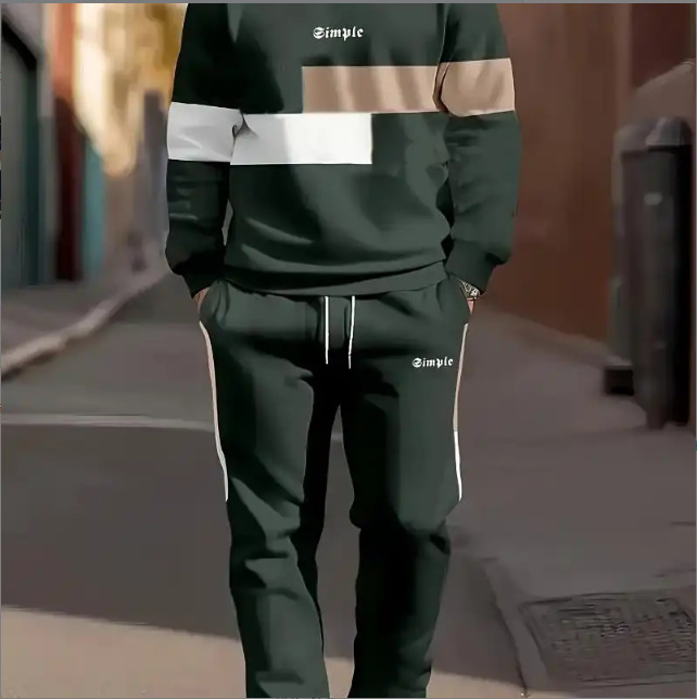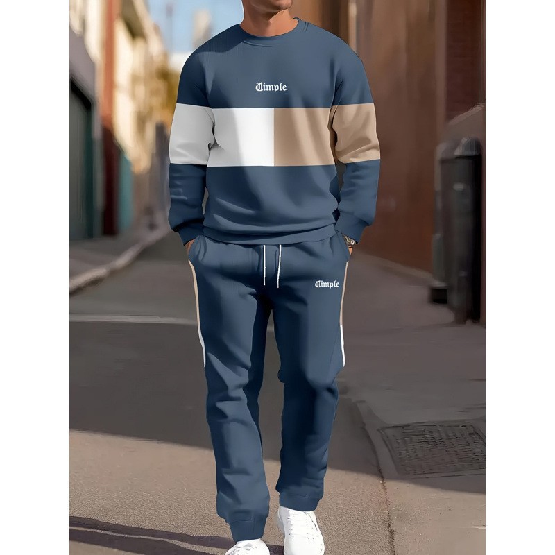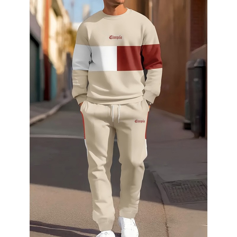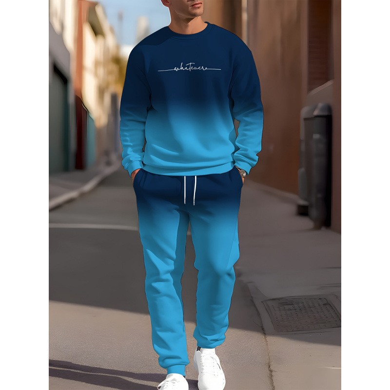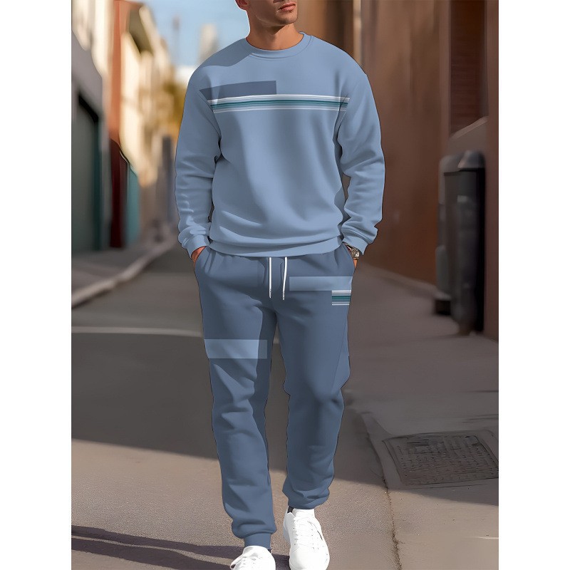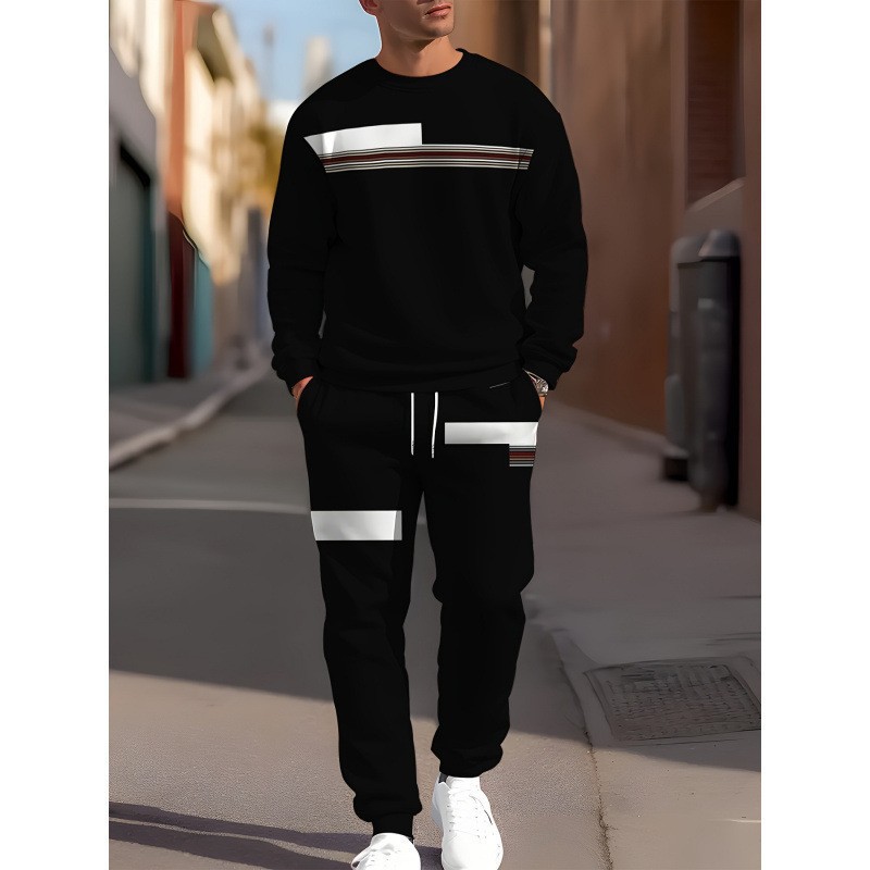 아마존 봄, 가을 시즌 크로스 보더 슈트 남성용 3D 프린트 긴팔 스웨트 셔츠와 스웨트 팬츠 캐주얼 맞춤형 프린트