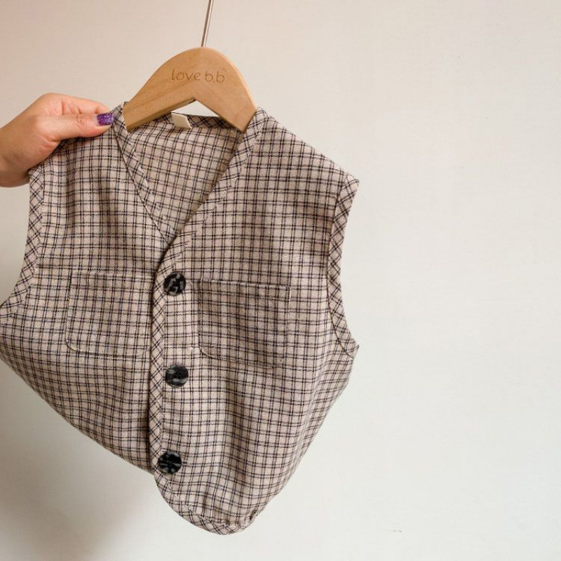 아동용 조끼 2025 여름 새로운 얇은 격자 무늬 조끼 소년과 소녀 유치원 스타일 다목적 탑 겉옷