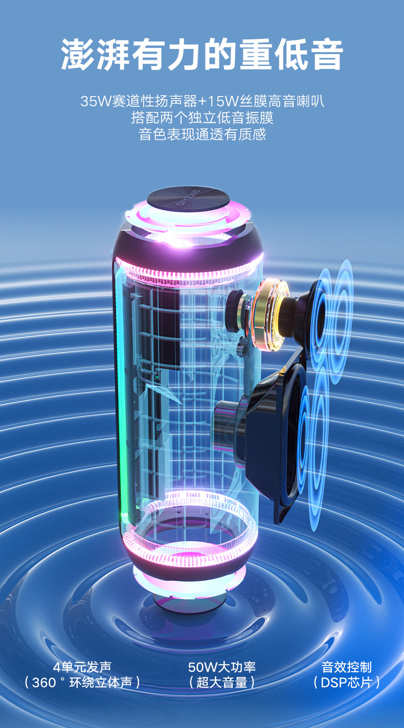 XDOBO 디지니티 2024 블루투스 스피커 50W 야외 라이딩 무선 서브우퍼 오디오