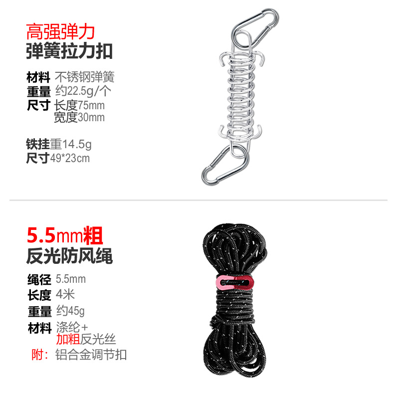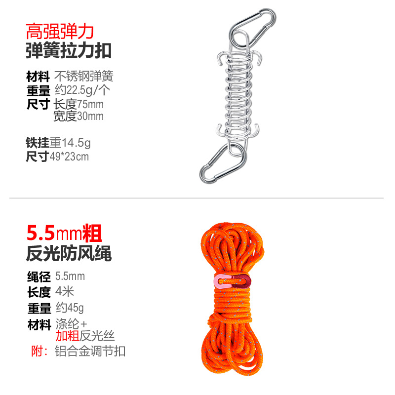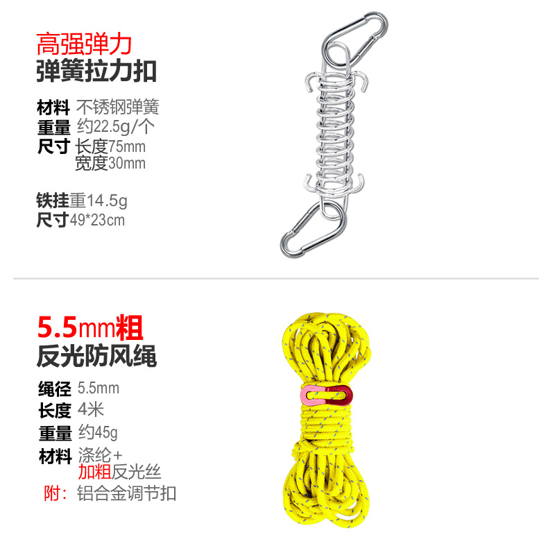 • [스프링 버클] + 퀵훅 2개 + 방풍 로프.