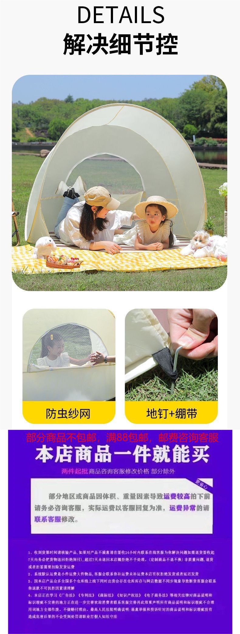 텐트 야외 해변 텐트 봄 나들이 여름 휴대용 인터넷 연예인 접이식 휴대용 음악 축제 캠핑 기본 항목스토어 가기
