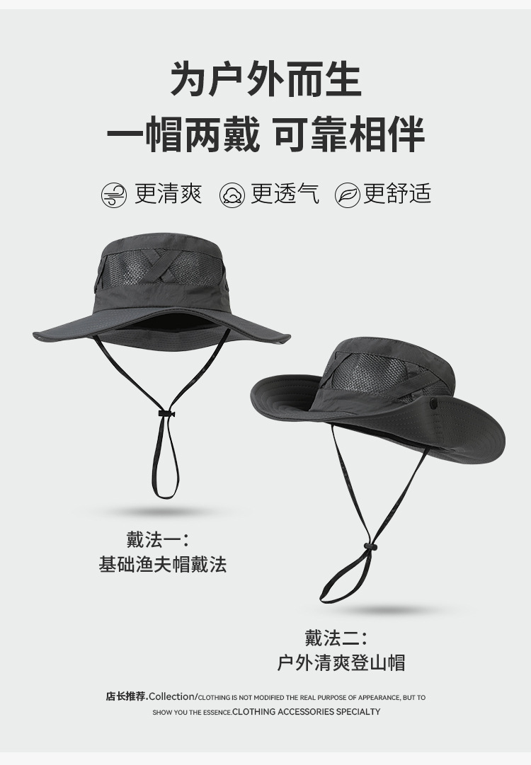 웨스턴 카우보이 대형 챙 성인 남성 등산 및 등산 태양 보호 졸라매는 끈 어부 모자 여행 야외 낚시 모자스토어 가기