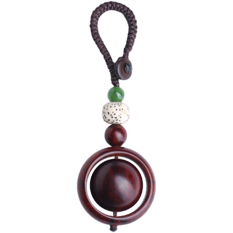[시 러닝] 작은 잎 붉은 백단 열쇠 고리 나무 질감 정통 마호가니 자동차 펜던트 도매