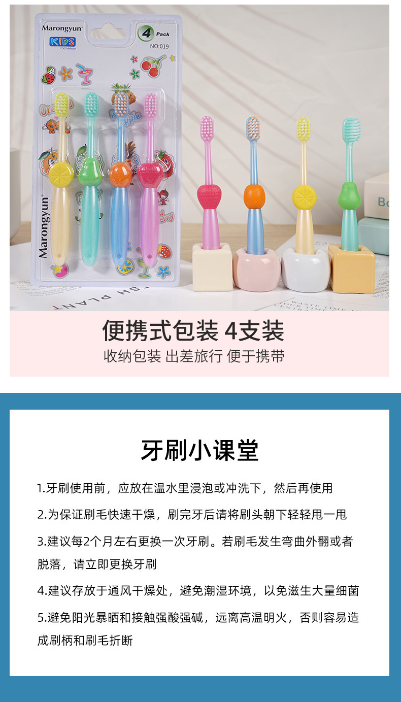 1-6-12세 남녀 아기를 위한 부드러운 칫솔, 작은 칫솔모, 청소용 칫솔, 4팩, 어린이용 과일 부드러운 칫솔