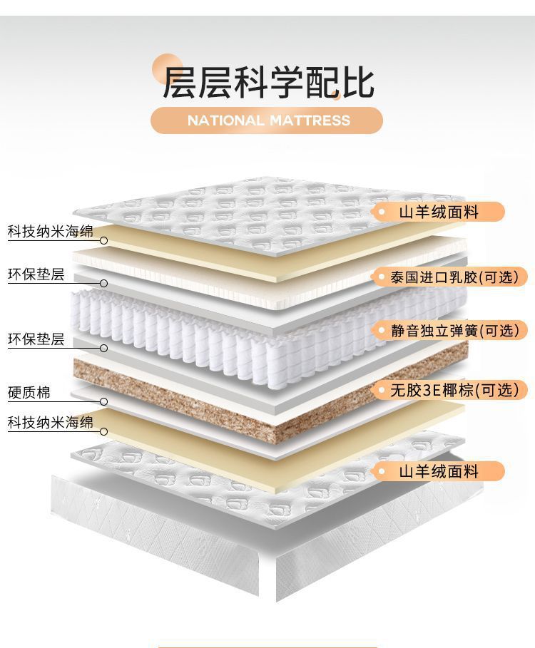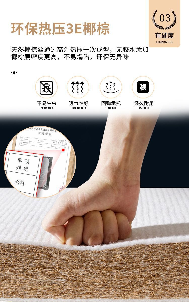 • Yunduo 캐시미어 원단 + 독립 스프링 + 3E 코코넛 야자