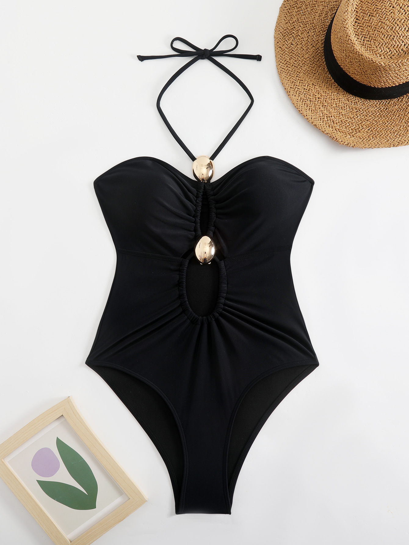아마존 솔리드 컬러 섹시 홀터넥 원피스 비키니 수영복 핫걸 비치 슬리밍 컷아웃 비키니 여성용스토어 가기