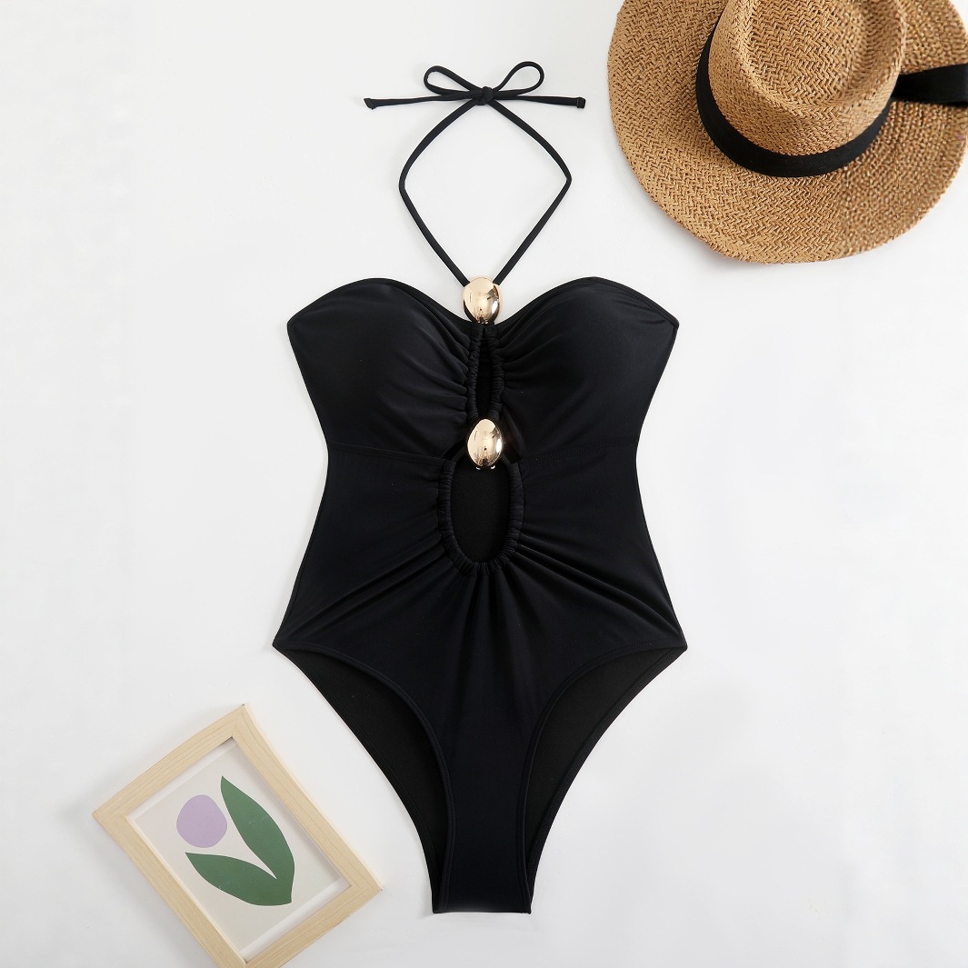 아마존 솔리드 컬러 섹시 홀터넥 원피스 비키니 수영복 핫걸 비치 슬리밍 컷아웃 비키니 여성용