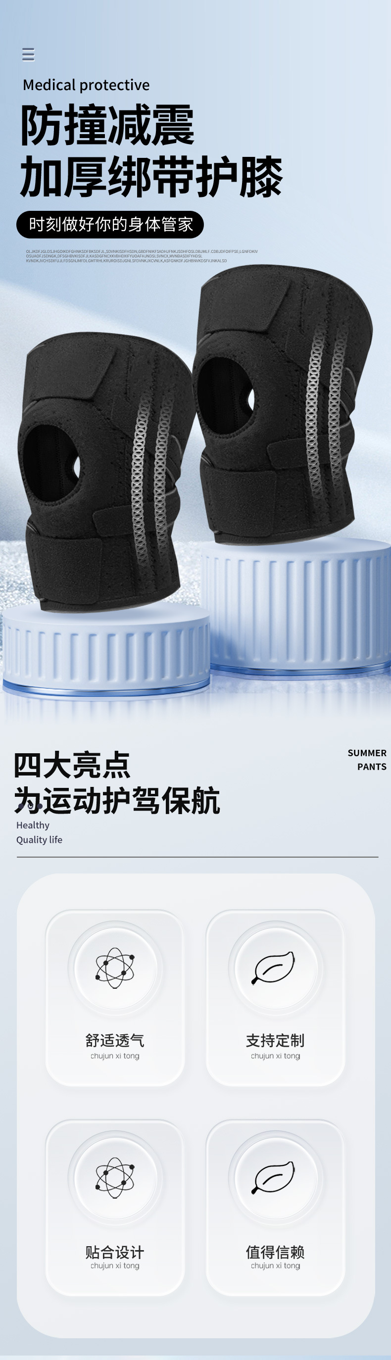 여름 등산 무릎 패드, 압축 스트랩, 스포츠 농구 및 사이클링, 야외 반월판 관절 부상 방지 스포츠 보호 장비