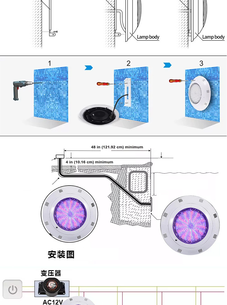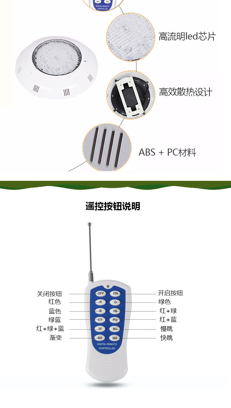 국경 간 LED 메인 전원 외부 제어 풀 조명 방수 단색 조명 조경 조명 풀 풍경 장식 풀 조명
