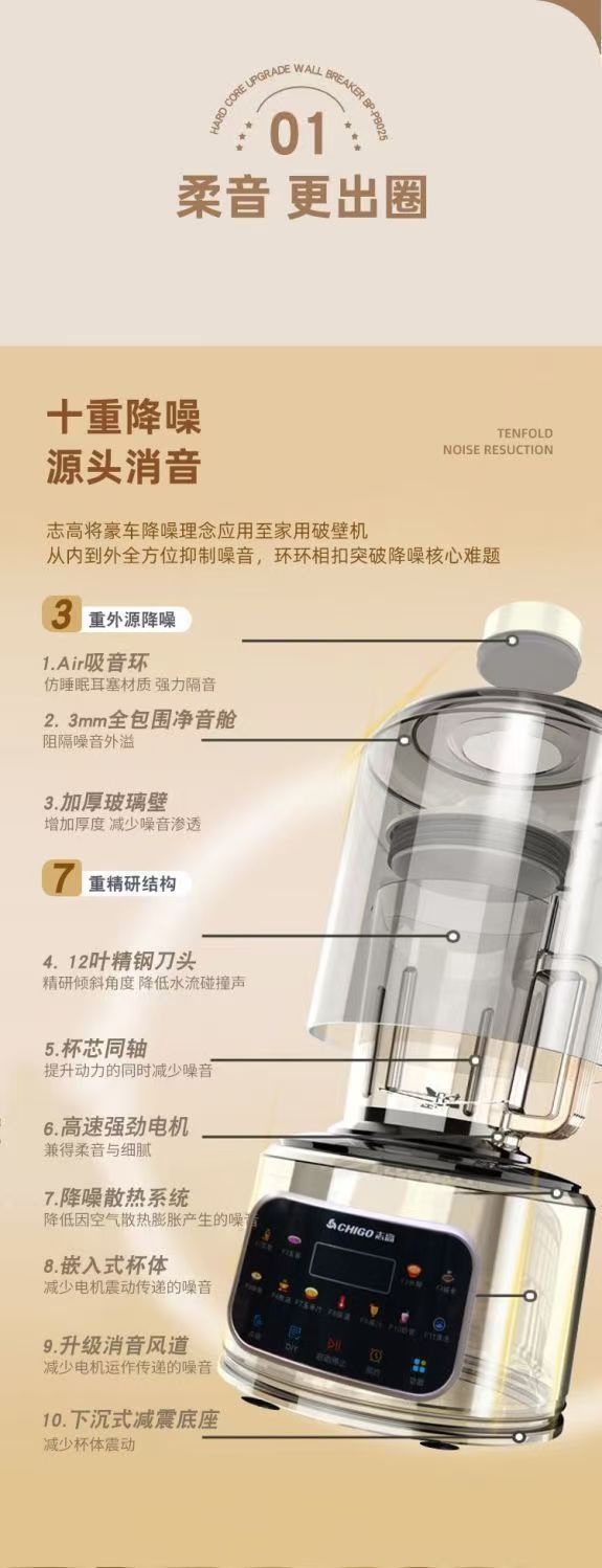 Chigo 벽 파괴 기계, 가벼운 소리, 필터 프리, 완전 자동 예약 가열, 끈적임 방지, 주스 추출, 가정용 2025 새로운 두유 기계스토어 가기