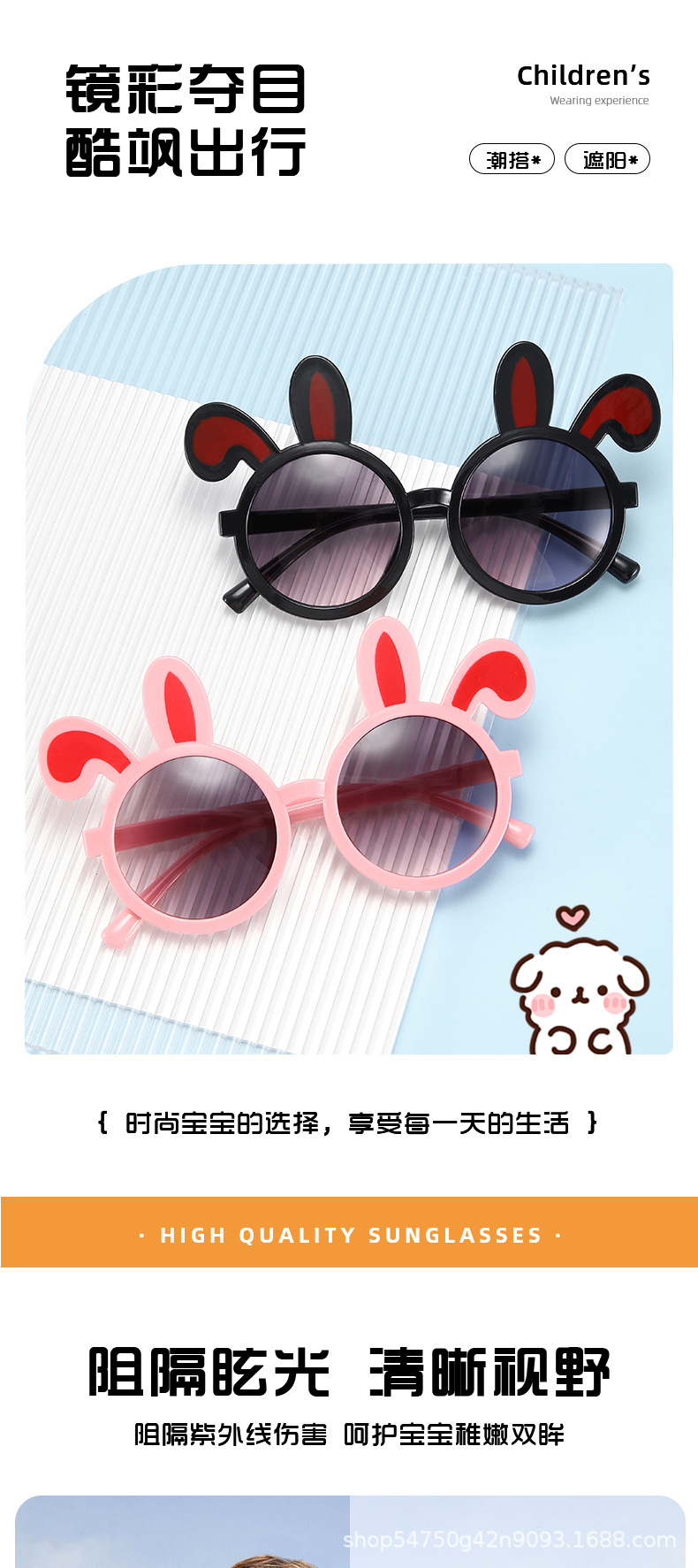 귀여운 토끼 귀 어린이 선글라스 만화 캔디 컬러 여름 휴가 자외선 차단 새로운 선글라스 차양스토어 가기