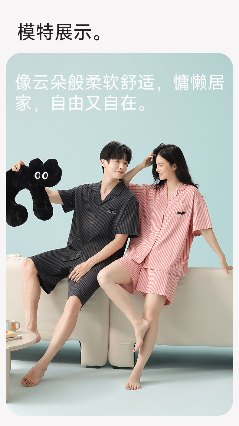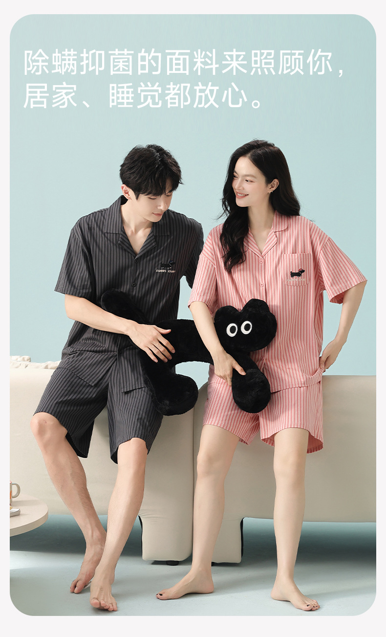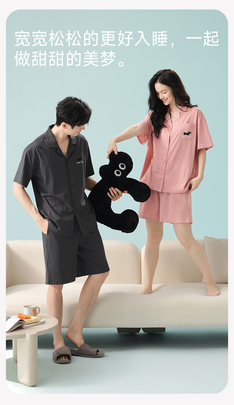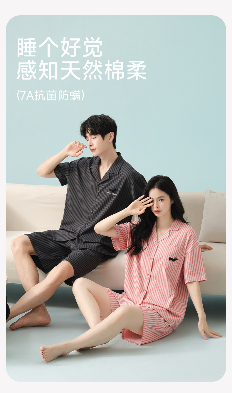 [항균 신장면] 커플 잠옷 순면 여성 봄 여름 얇은 반팔 줄무늬 남성 홈웨어 세트스토어 가기