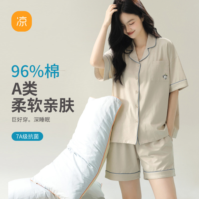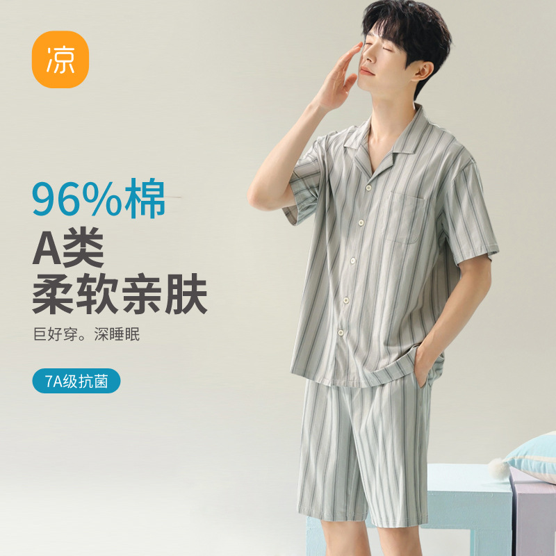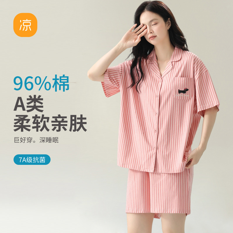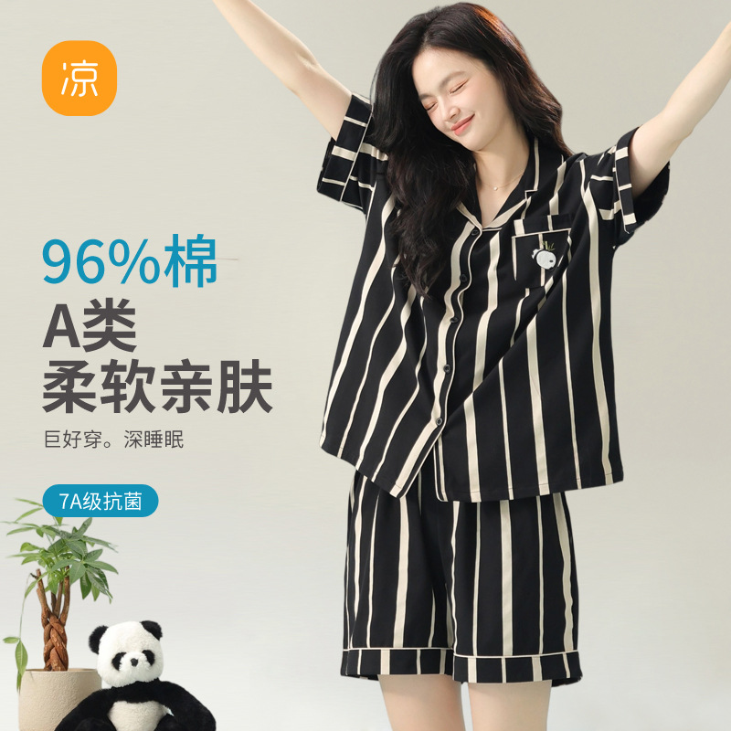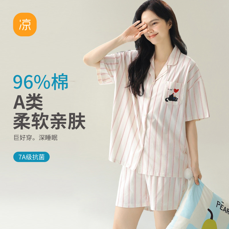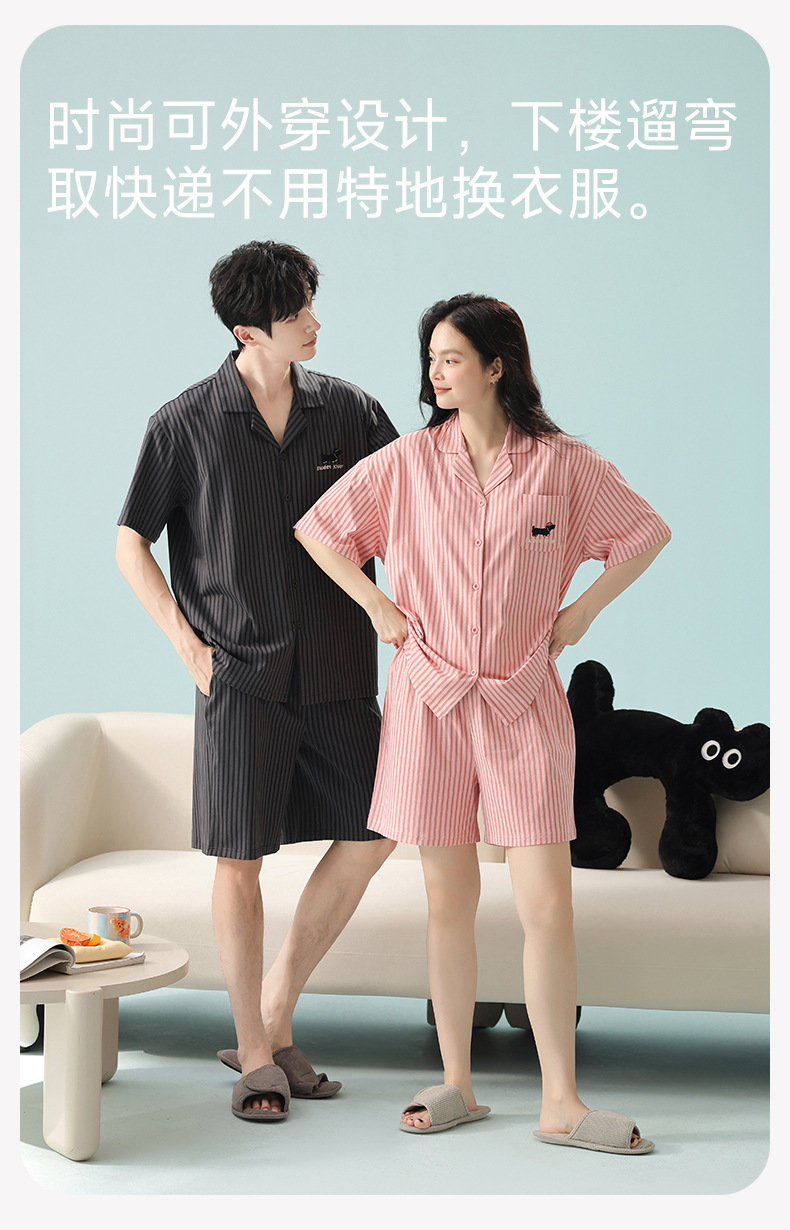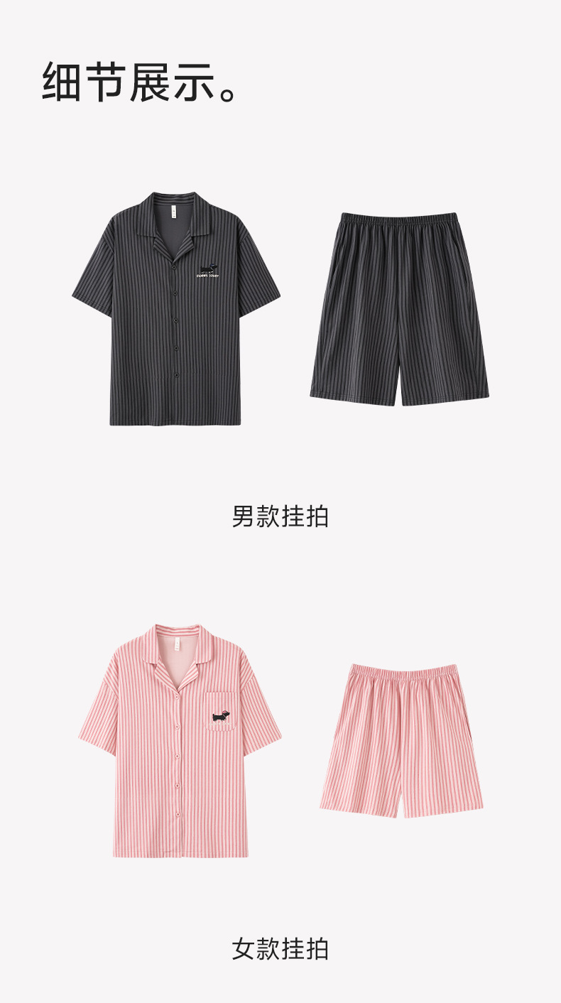 [항균 신장면] 커플 잠옷 순면 여성 봄 여름 얇은 반팔 줄무늬 남성 홈웨어 세트스토어 가기