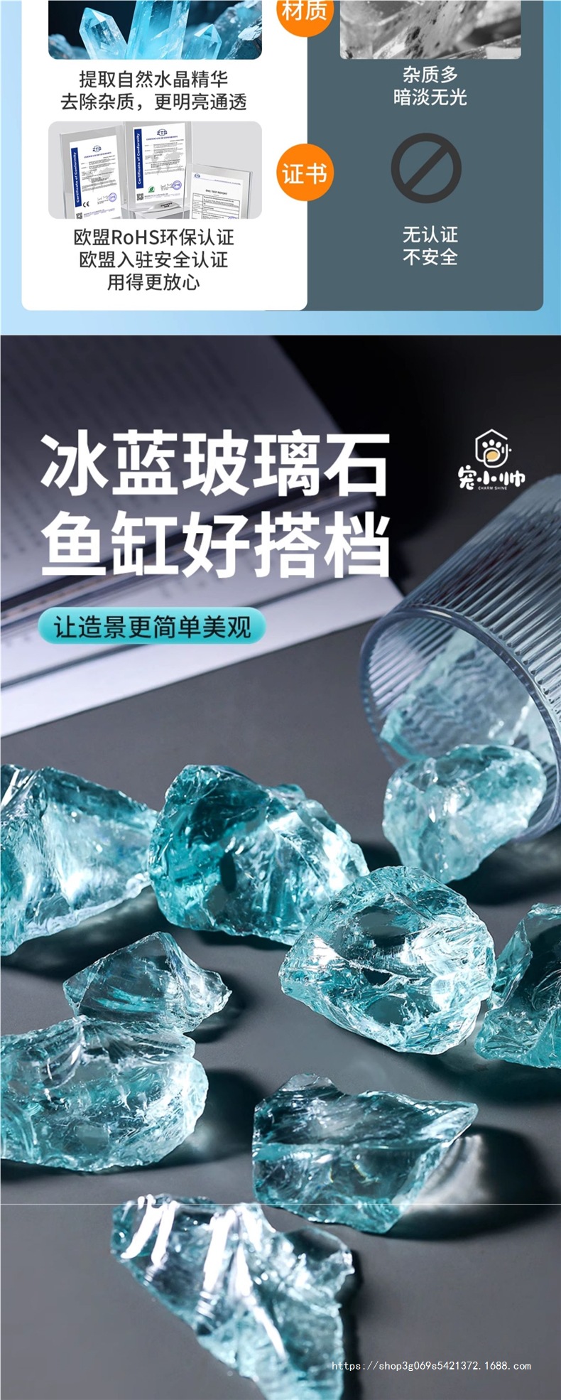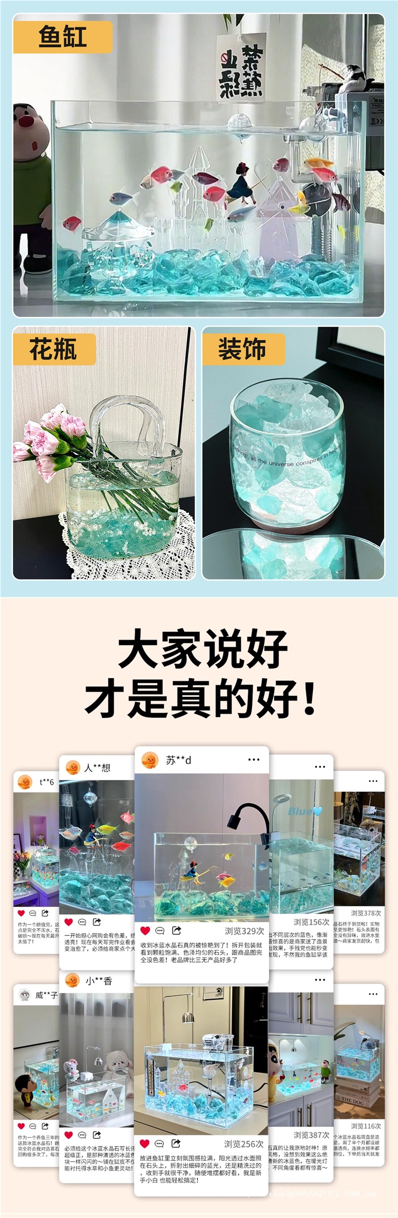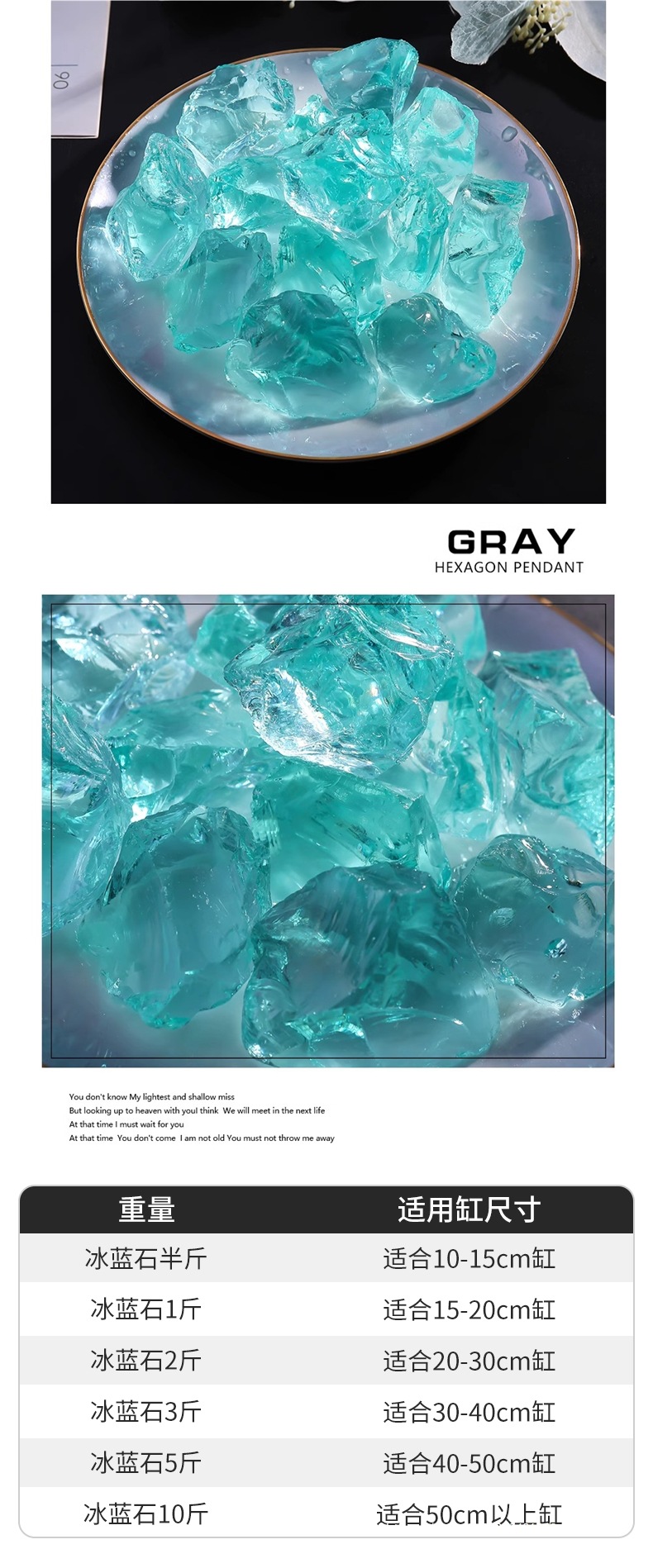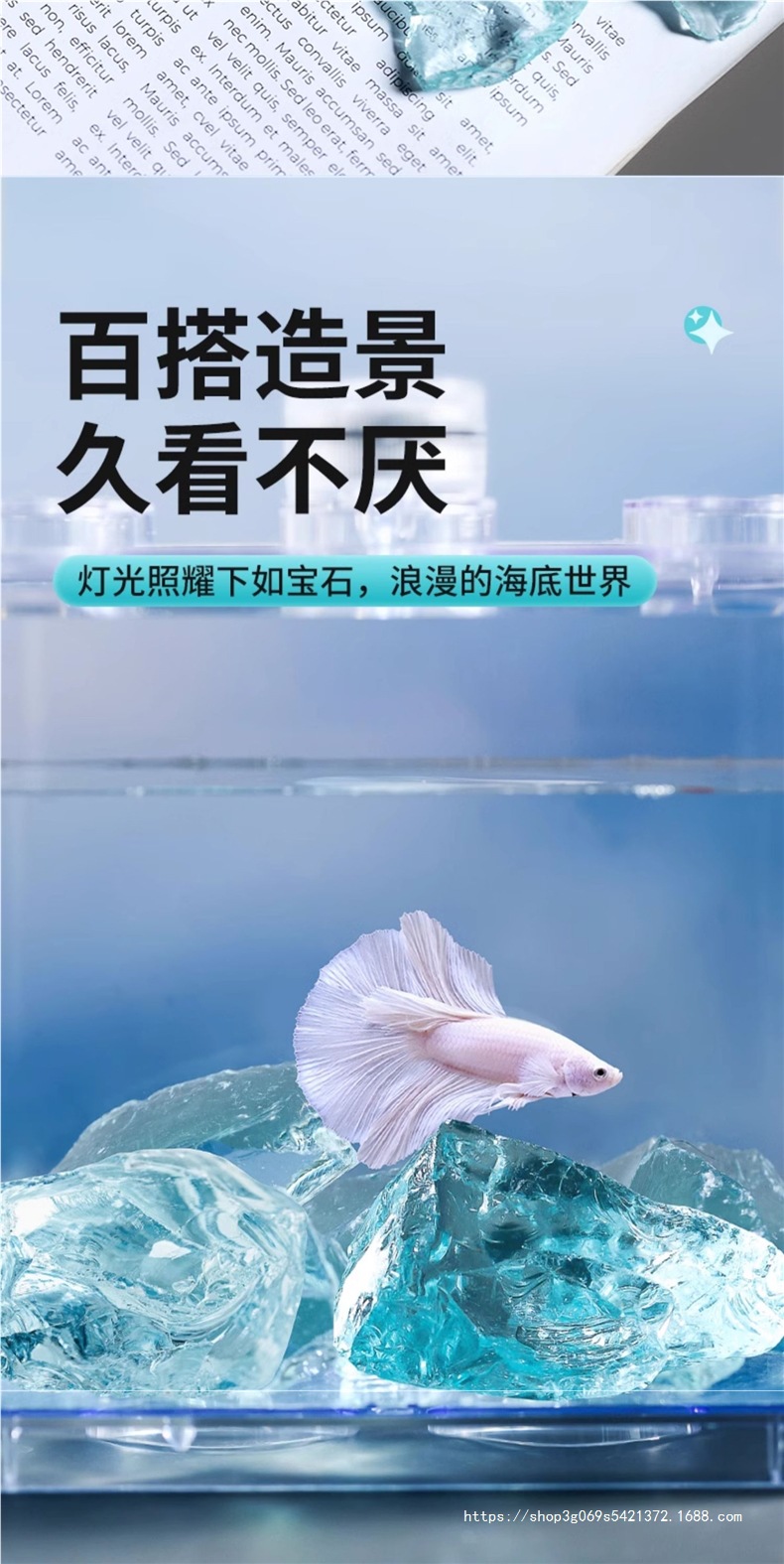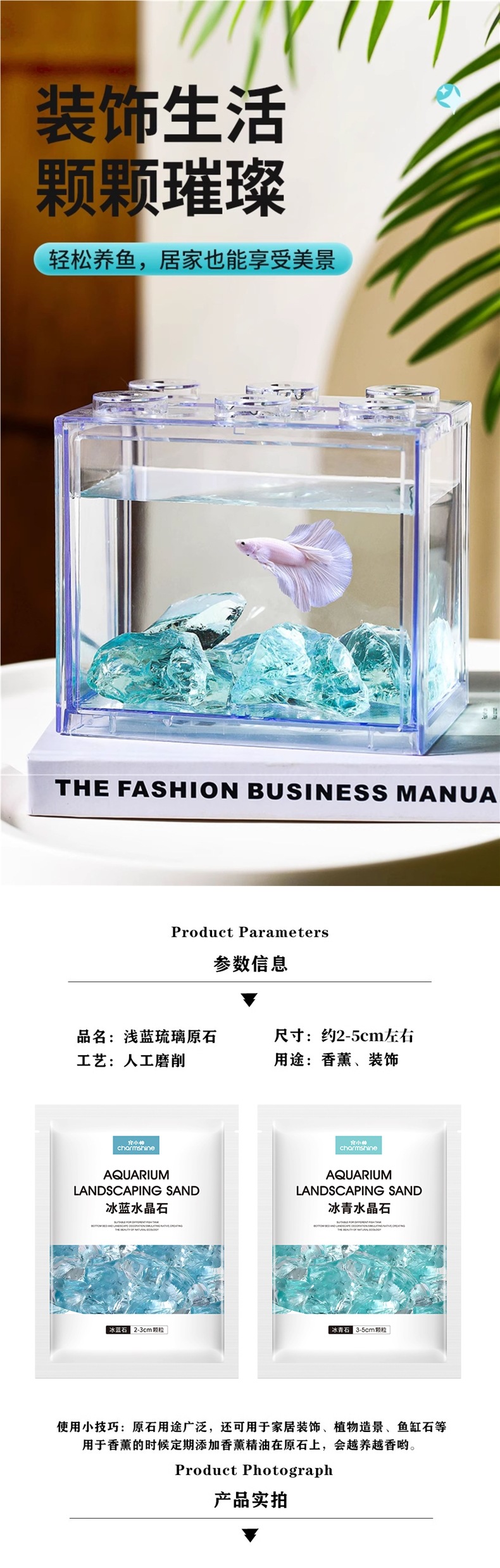 아이스 블루 유리 크리스탈 물고기 탱크 조경 장식품 수족관 돌 크리 에이 티브 장식 바닥 모래 풍경 바닥 관찰 돌스토어 가기