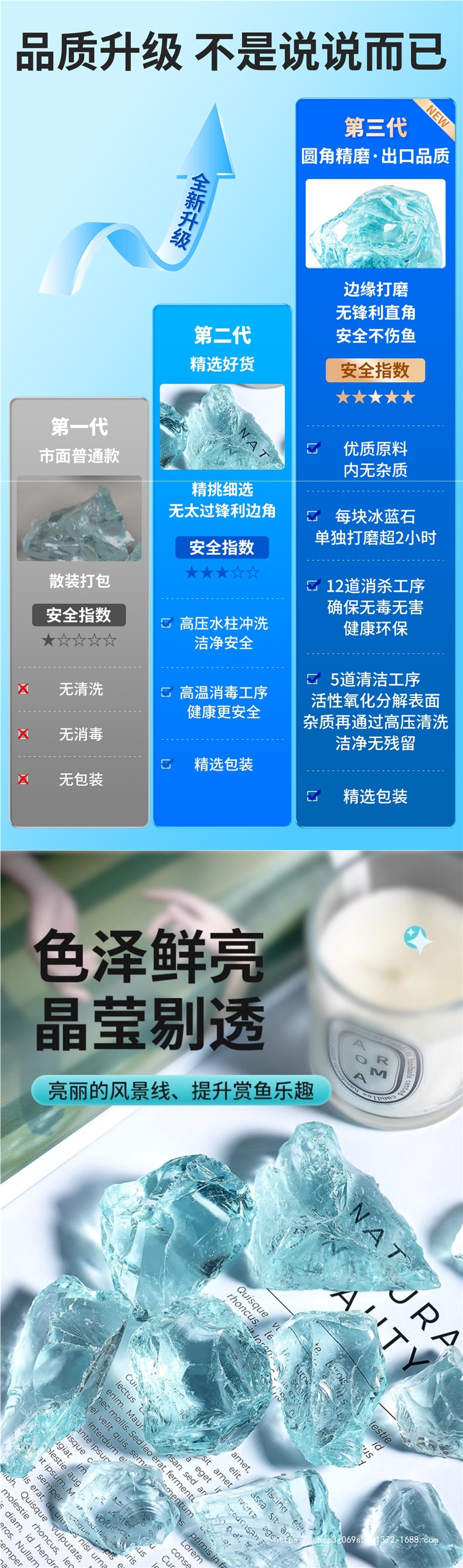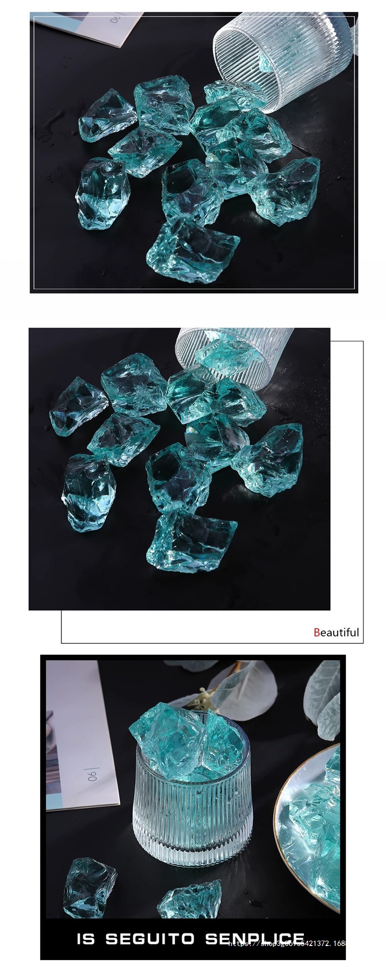 아이스 블루 유리 크리스탈 물고기 탱크 조경 장식품 수족관 돌 크리 에이 티브 장식 바닥 모래 풍경 바닥 관찰 돌