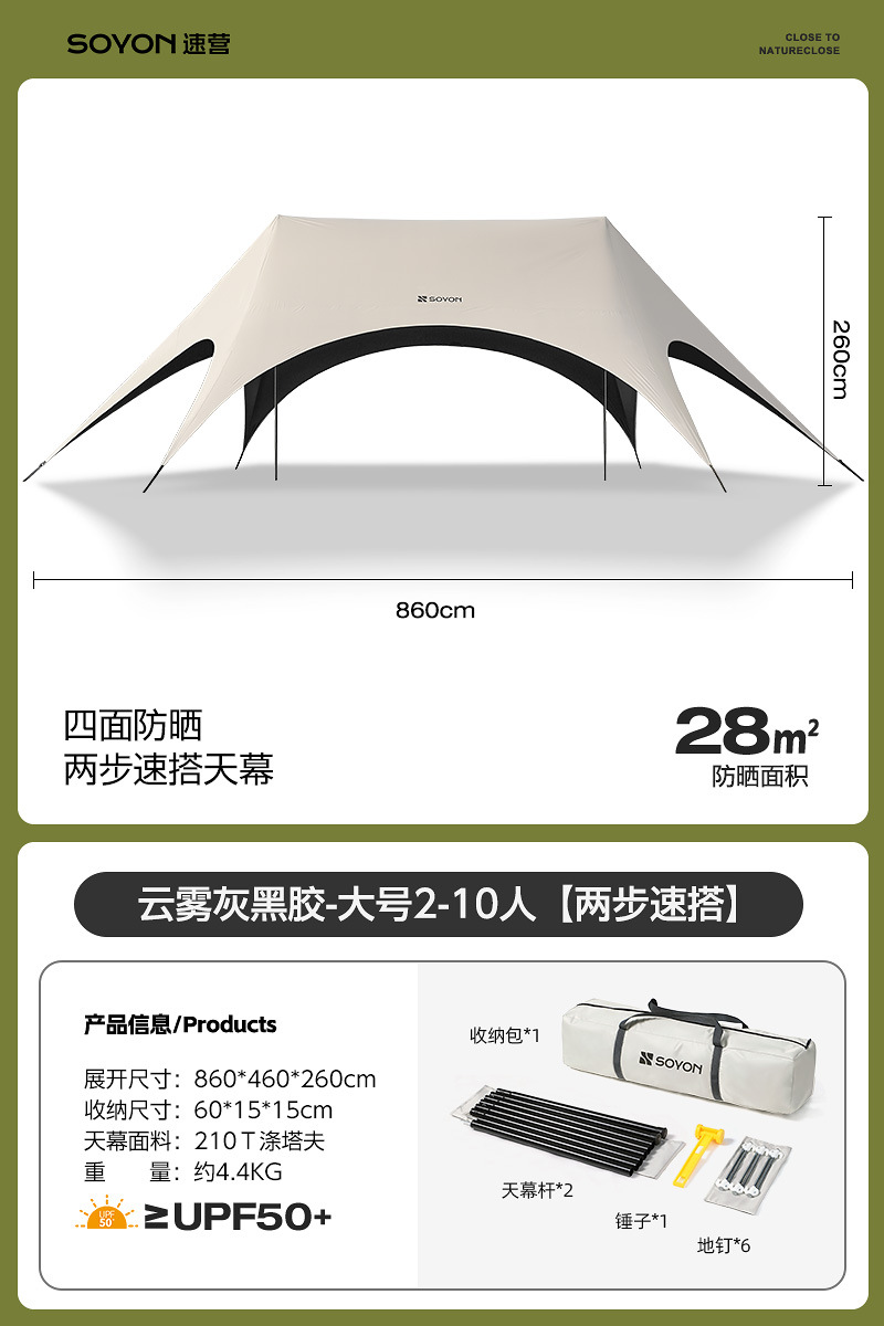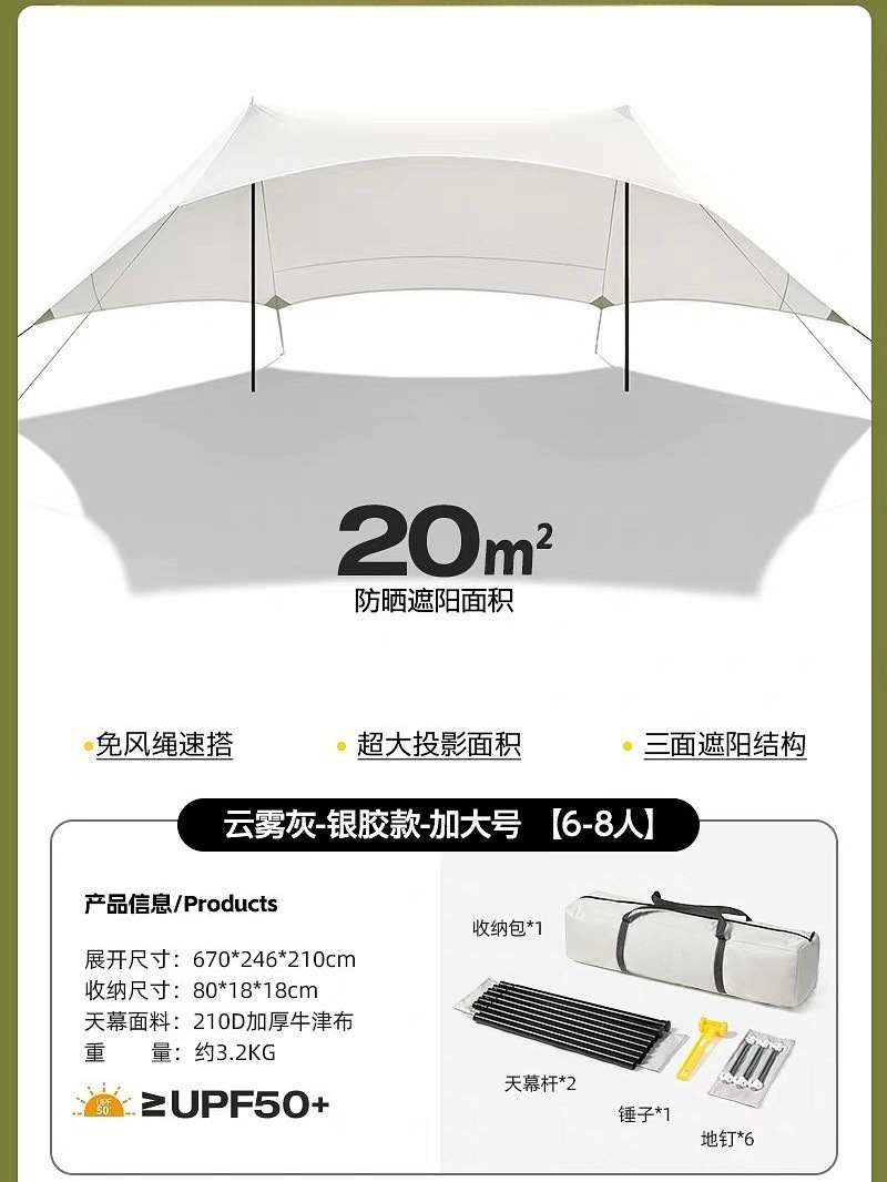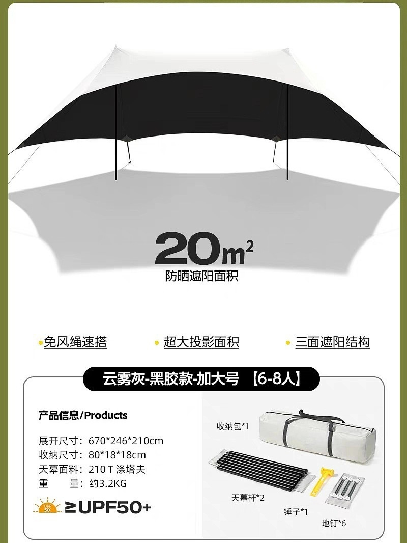 • 20m² 면적] 클라우드 그레이 - 비닐 스타일 - 특대형 6~8인용 [2단 빠른 설치]