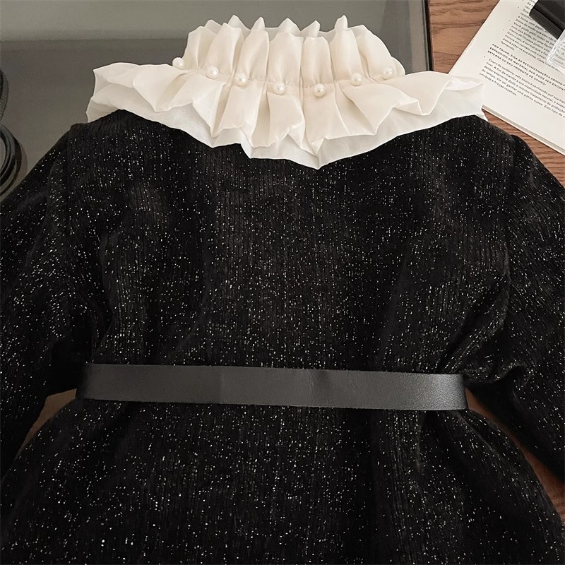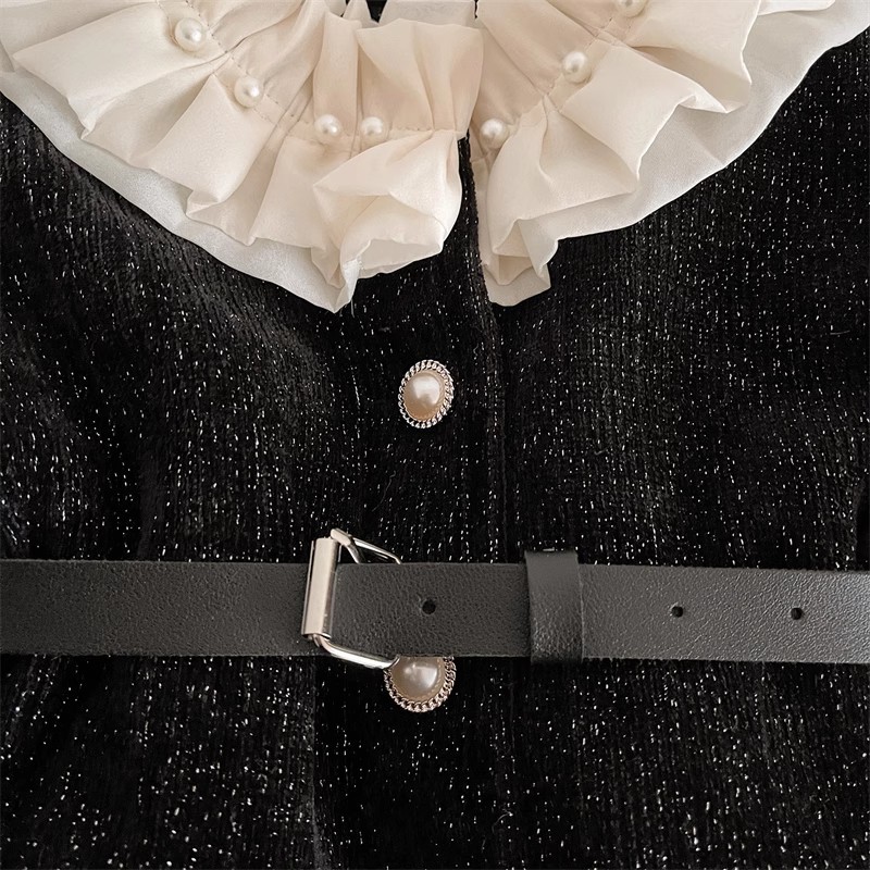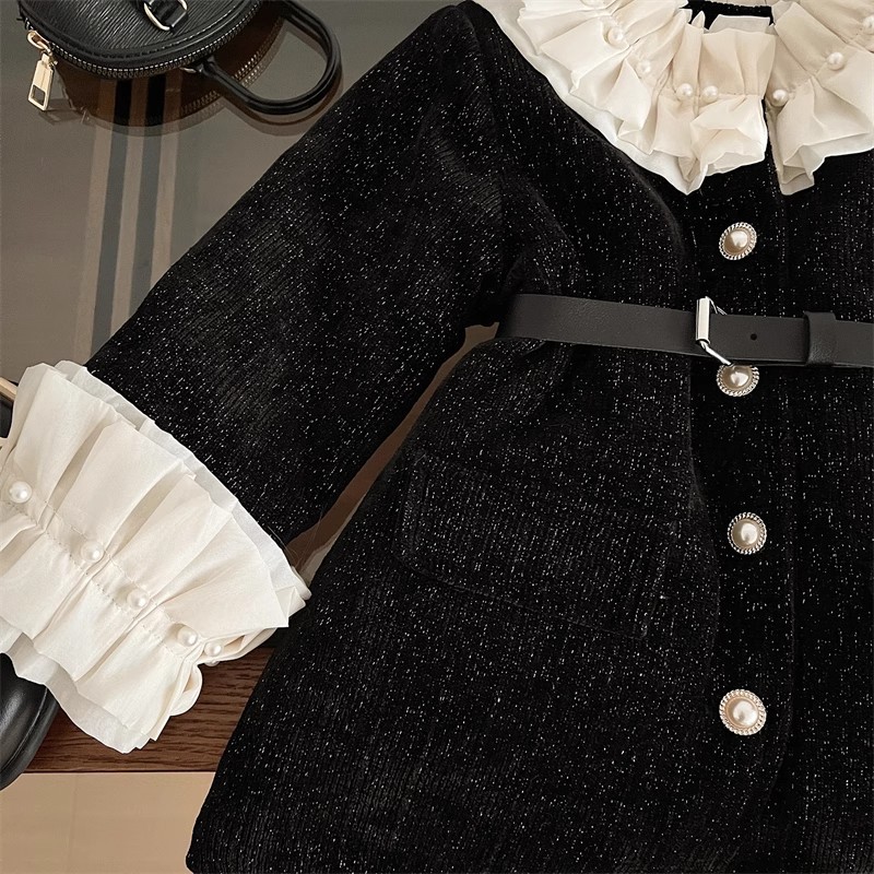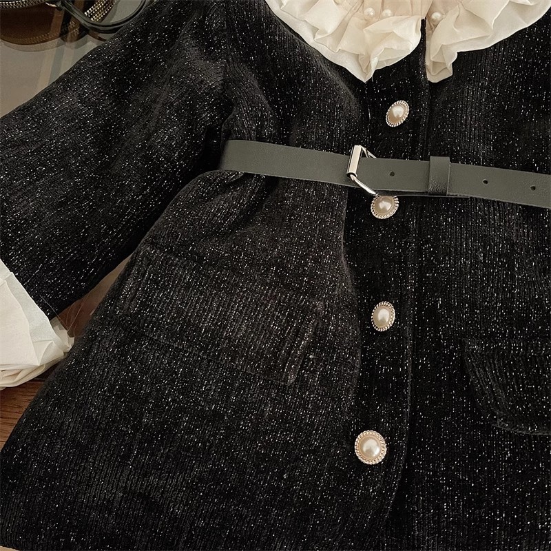 2025 겨울 새로운 한국 스타일 여자 블랙 허리 긴 레이스 칼라 코트 여자 귀여운 우아한 롱 스커트 유행스토어 가기