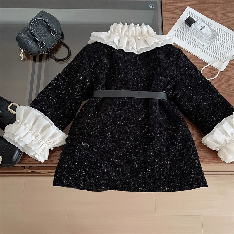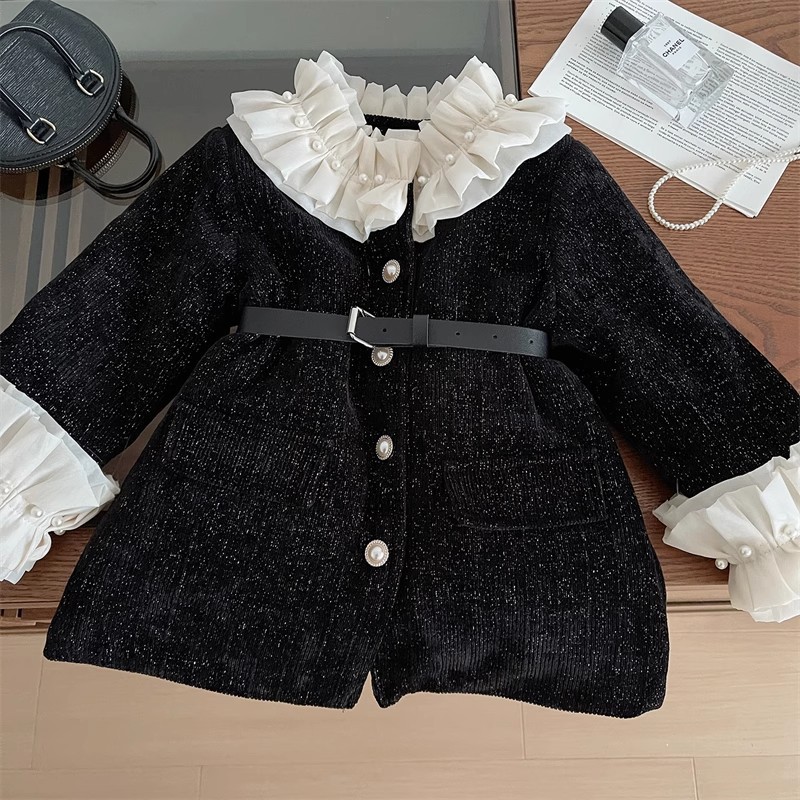 2025 겨울 새로운 한국 스타일 여자 블랙 허리 긴 레이스 칼라 코트 여자 귀여운 우아한 롱 스커트 유행