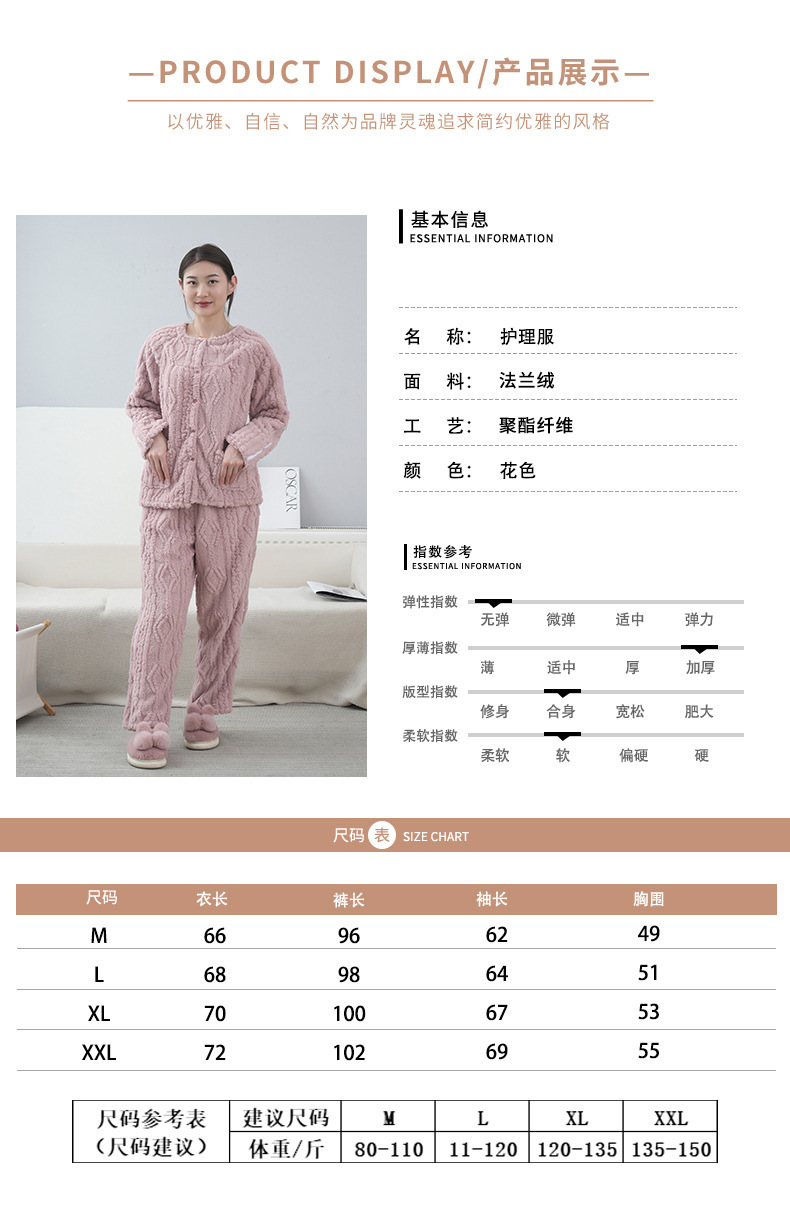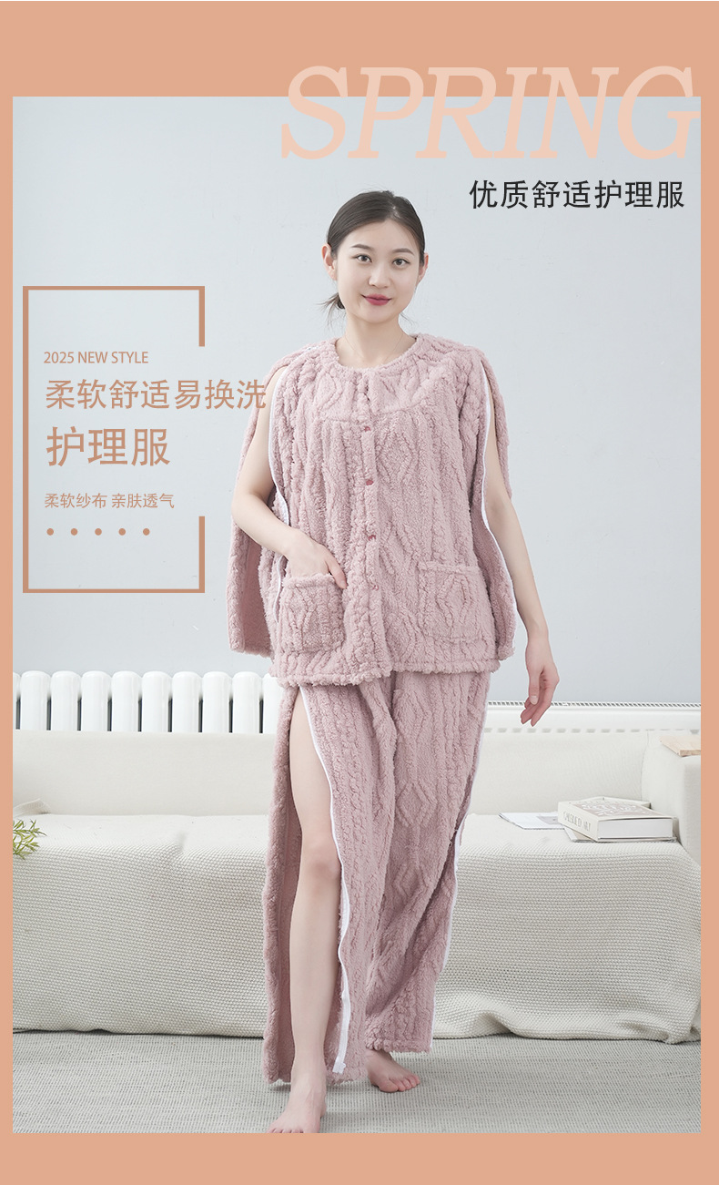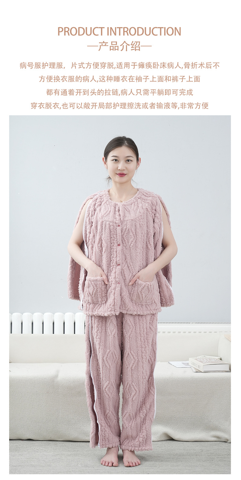 여성용 일체형 보온 간호복 가을 겨울 착탈 간편 플란넬 재활 노인 침대용 침술 치료복 대형 사이즈스토어 가기