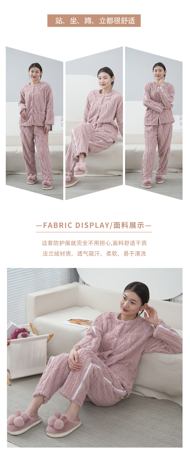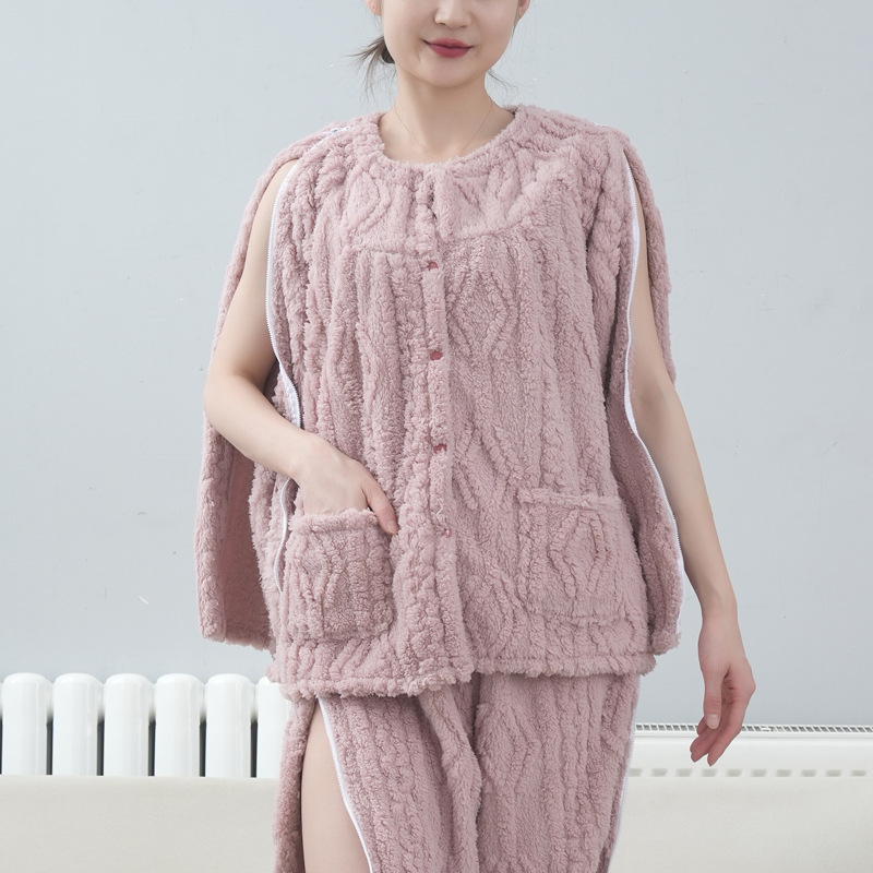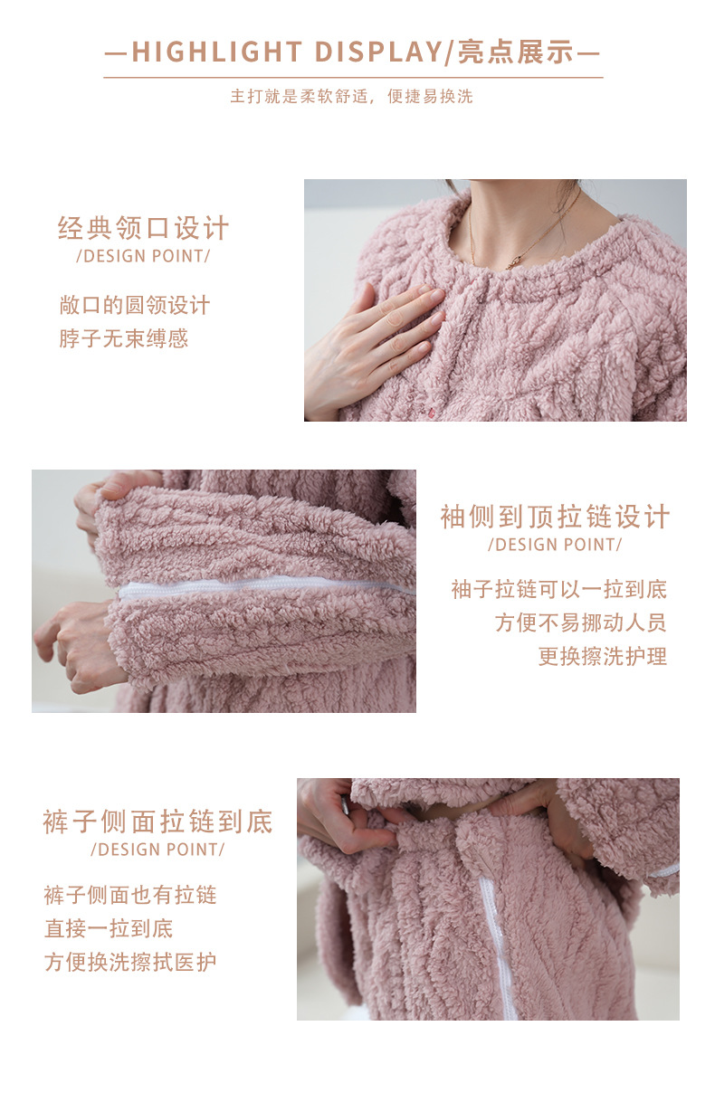 여성용 일체형 보온 간호복 가을 겨울 착탈 간편 플란넬 재활 노인 침대용 침술 치료복 대형 사이즈