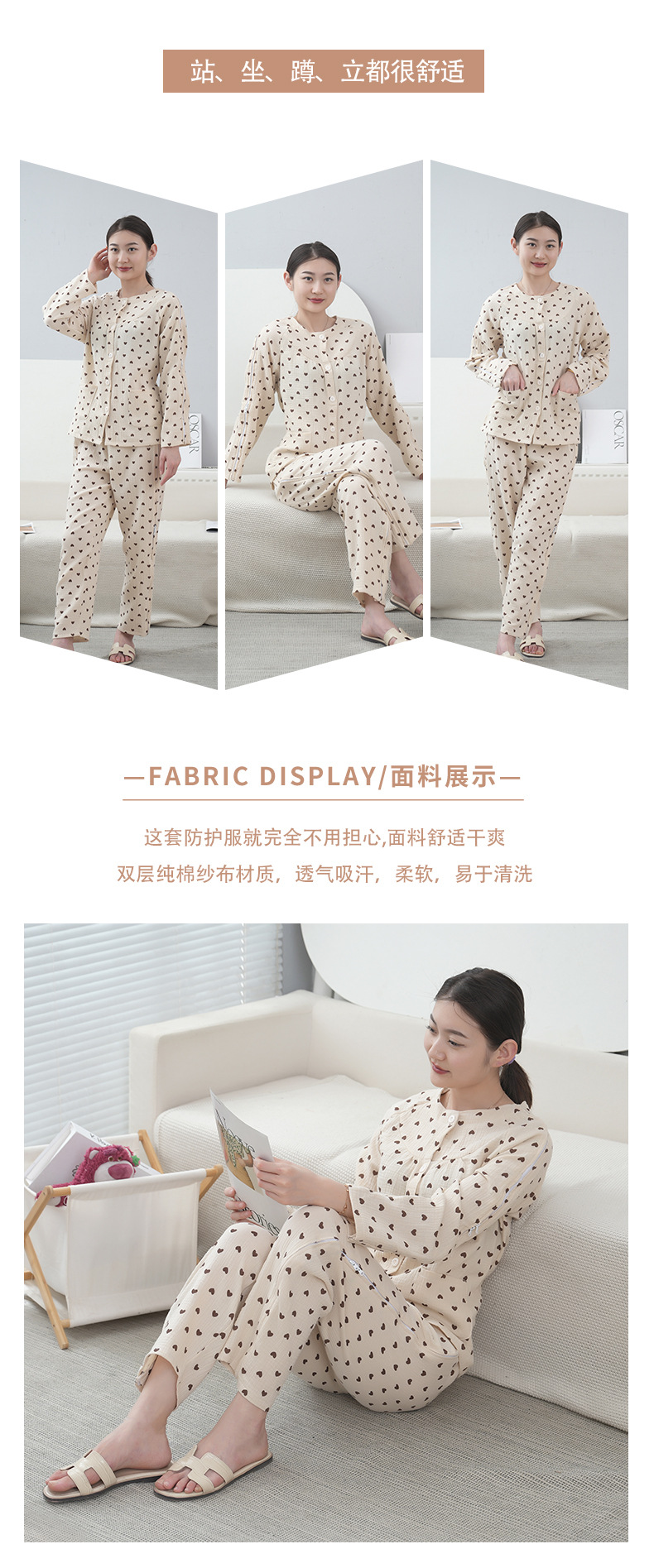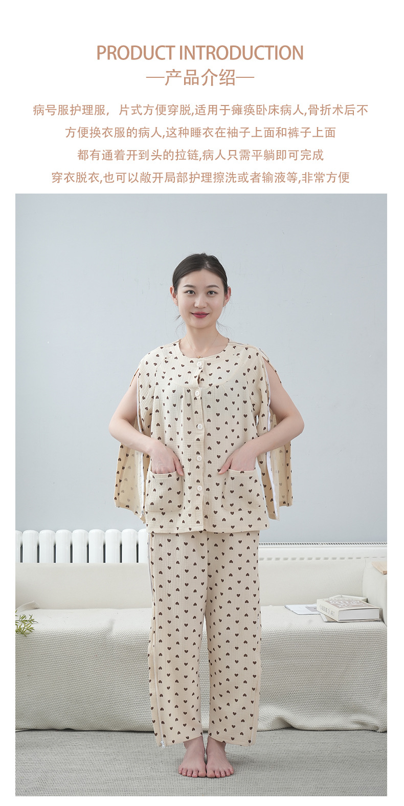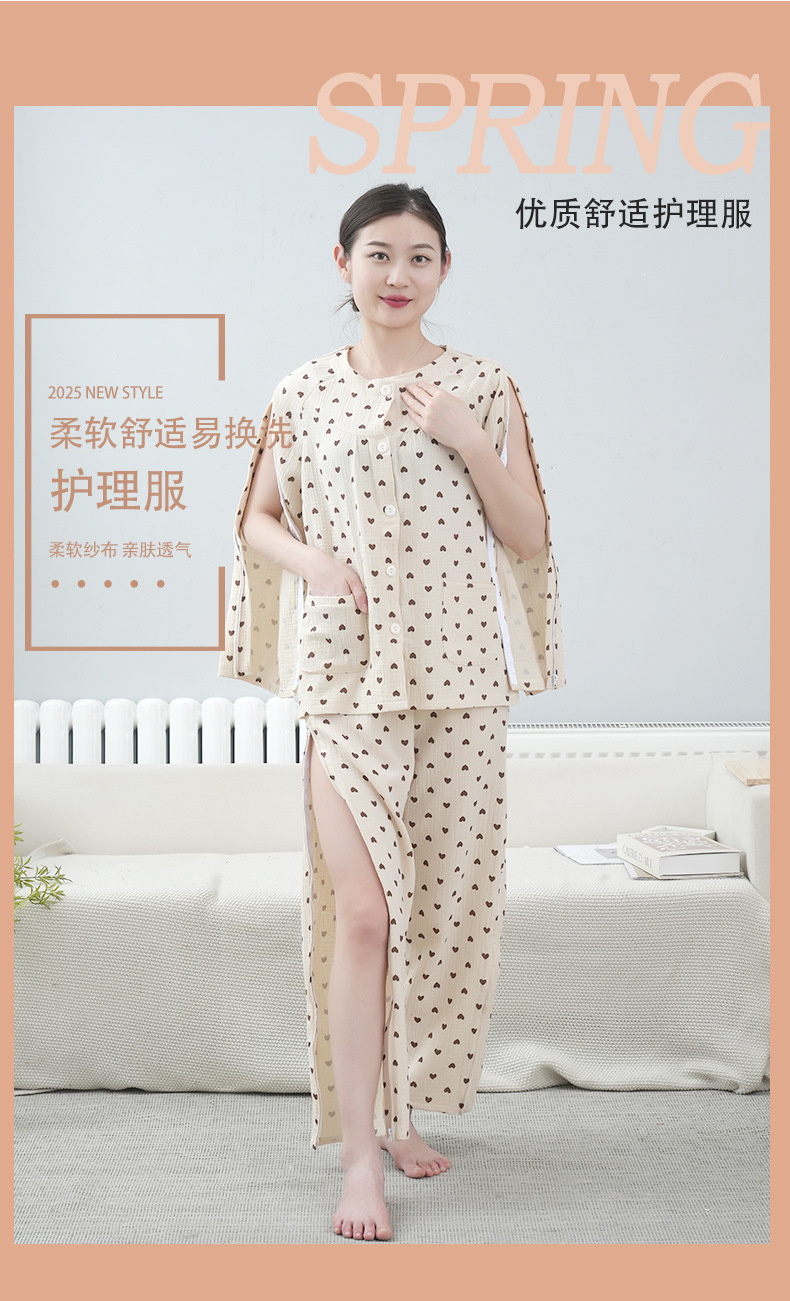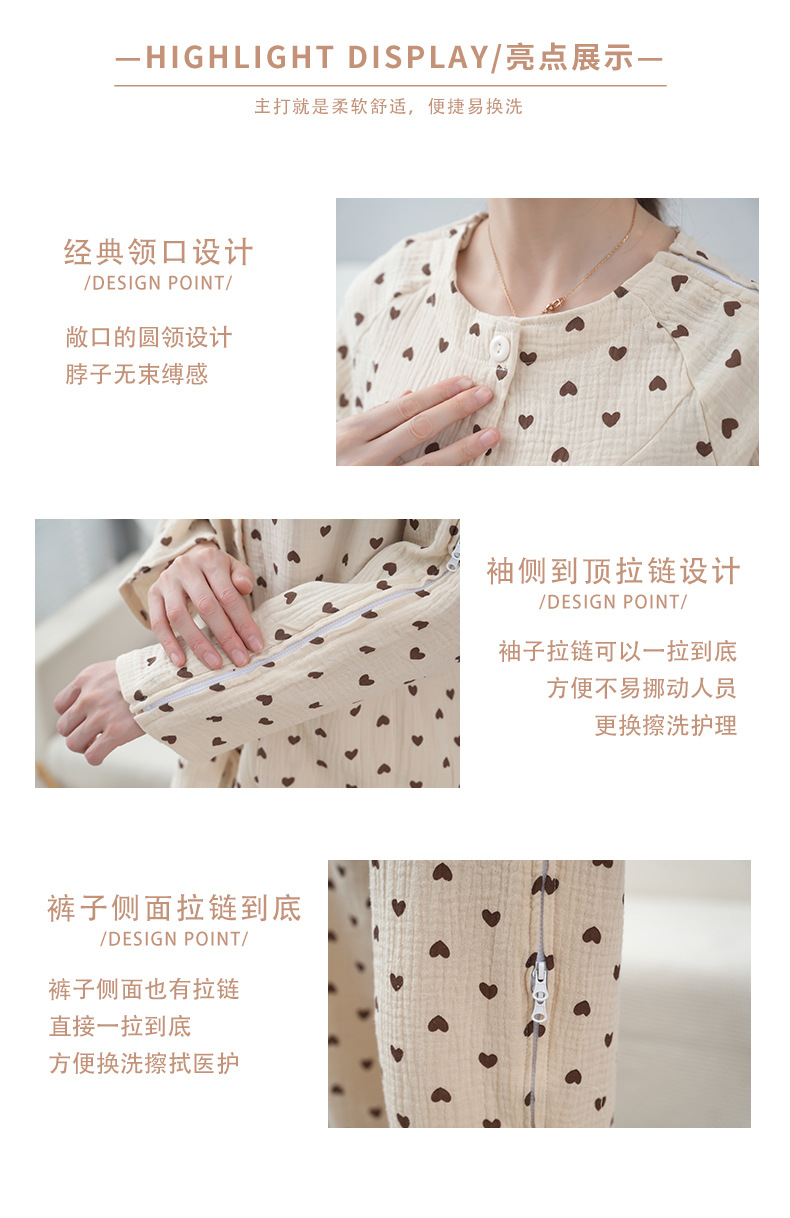 여성용 사계절 간호복 일체형 거즈 순면 노인 골절 침대용 간호복 착탈이 쉬운 재활 침술 치료복스토어 가기