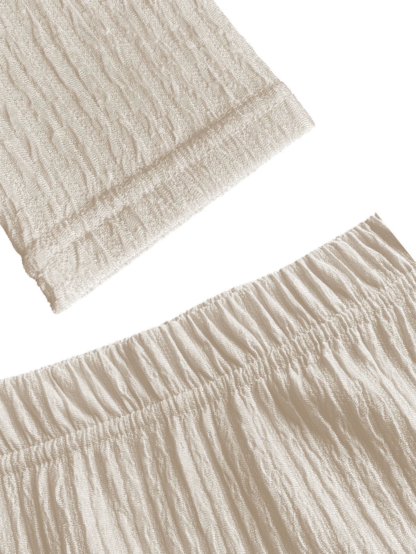 TD2809 유럽과 미국의 국경 간 여성 솔리드 컬러 지퍼 쇼트 탑 투피스 세트 러플 바지 스커트 슈트