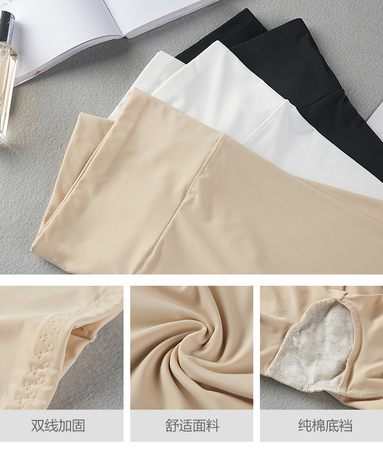 여성용 심리스 누드 대형 노출 방지 레깅스, 심리스 엣지 뱃살 조절 아이스 실크 3점 심리스 안전팬츠 공장 배치
