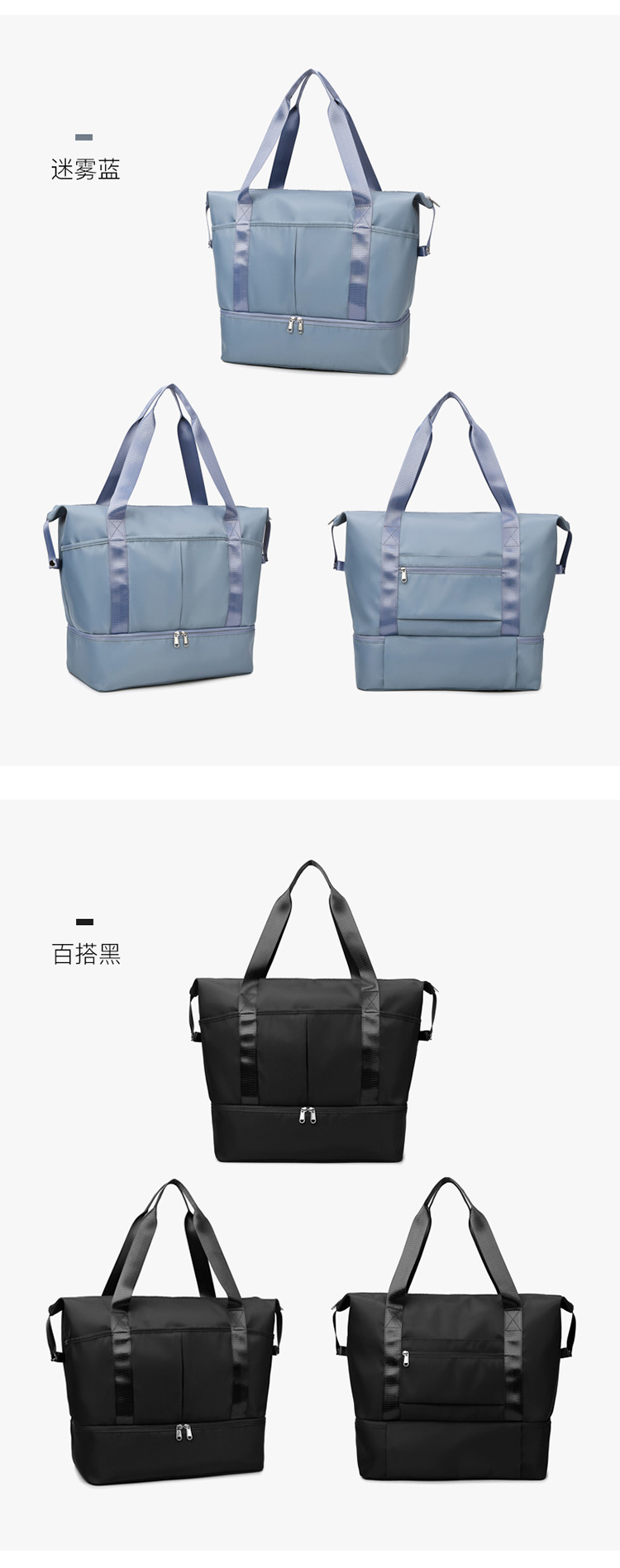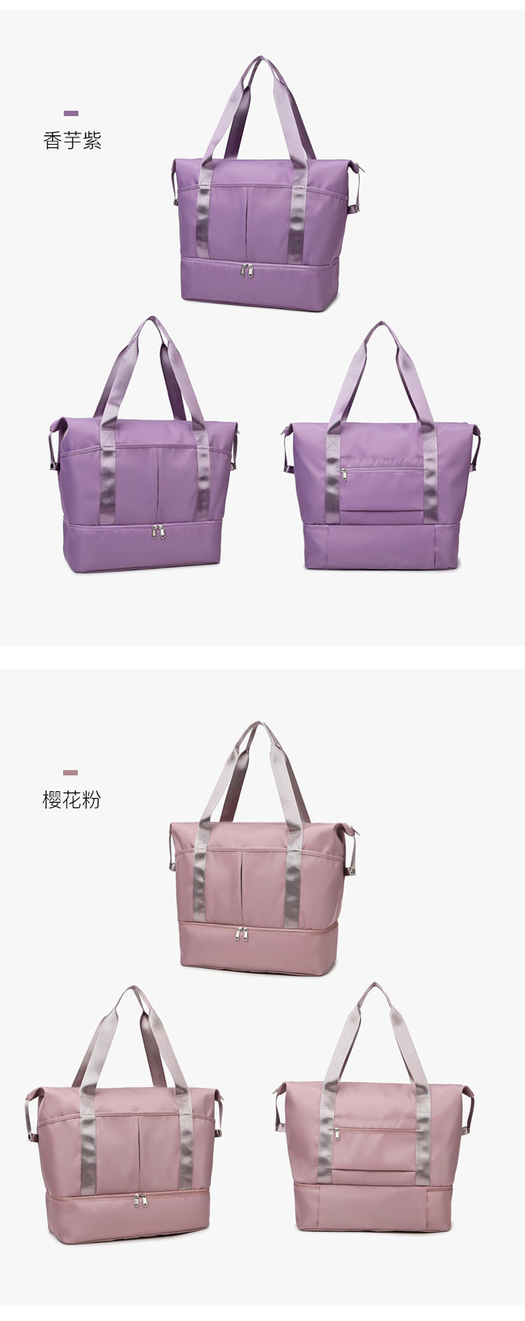 남성과 여성을 위한 건식 및 습식 분리 여행 가방, 대용량 요가 피트니스 가방, 옥스포드 천 이동 수하물 보관 가방