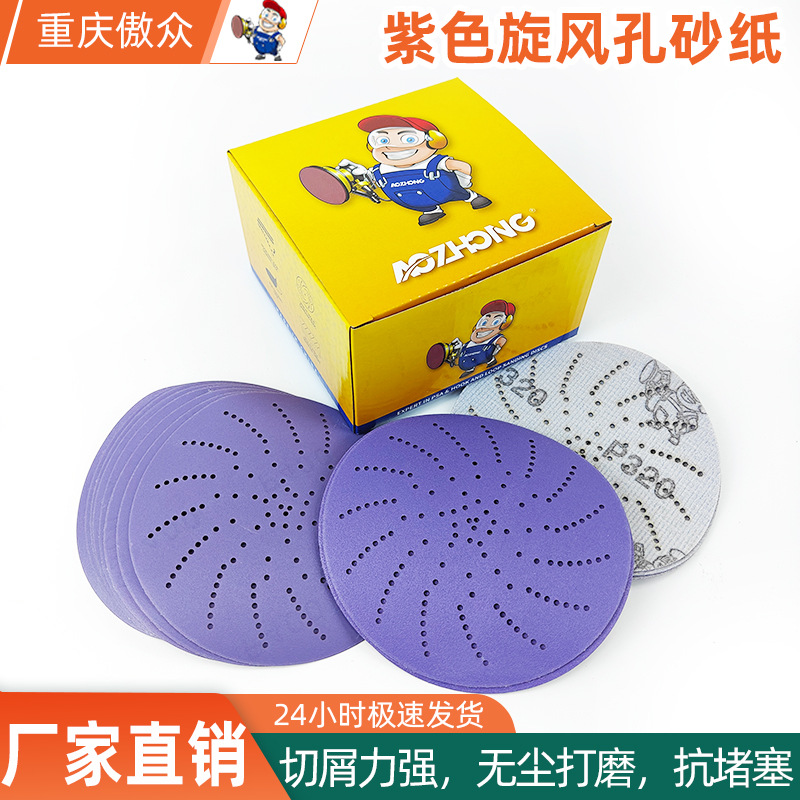 가공용 사이클론 홀 사포 5inch 세라믹 연마재 자동차 리어 윙 퍼티 그레이 무진동 연마 퍼플 사포 맞춤 제작