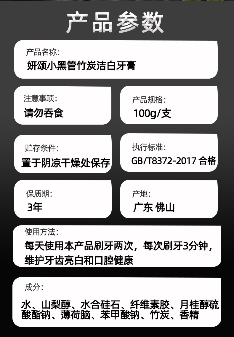 • 작은 검은색 튜브 대나무 숯 클렌징 치약 100g