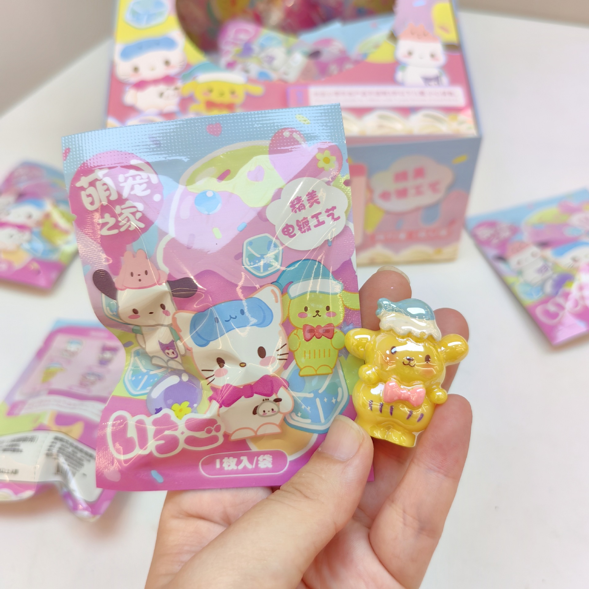 새로운 Sanlio 블라인드 박스, 귀엽고 귀여운 전기 도금 수지 펀치 귀여운 생방송 개봉 작은 블라인드 박스 작은 장식품스토어 가기
