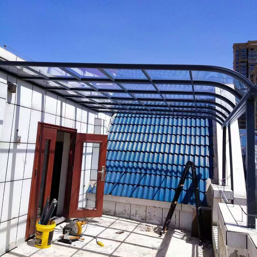 맞춤형 야외 플라스틱 내구성 판넬 차양 빌라 알루미늄 합금 조립 일체형 야외 정원 투명 PC 차양